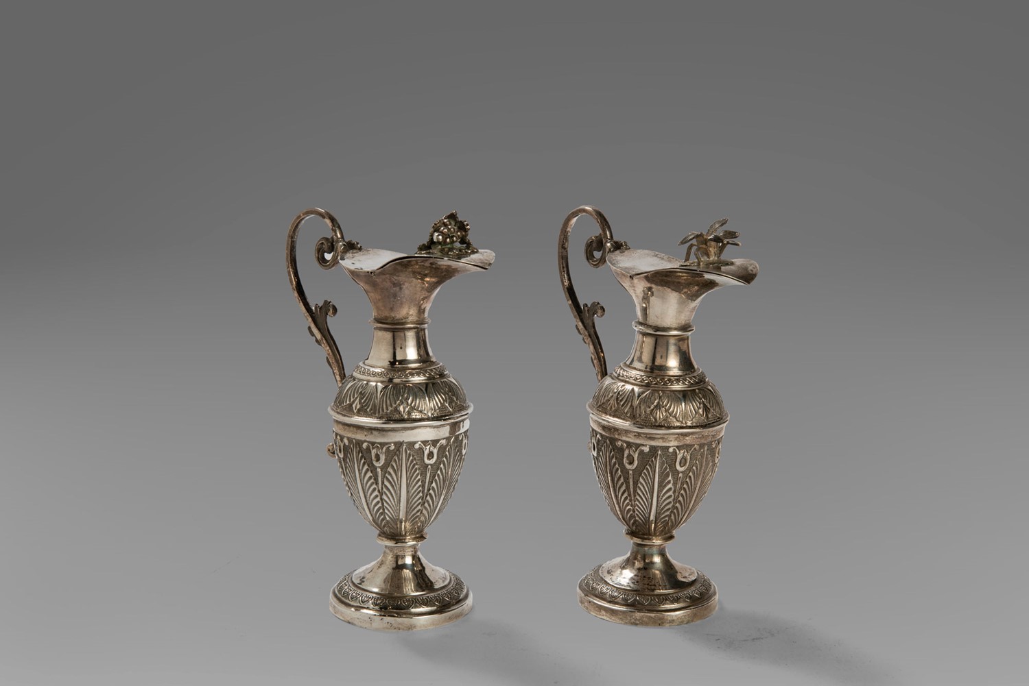 Due anforette in argento, bollo Roma, prima metà del secolo XIX