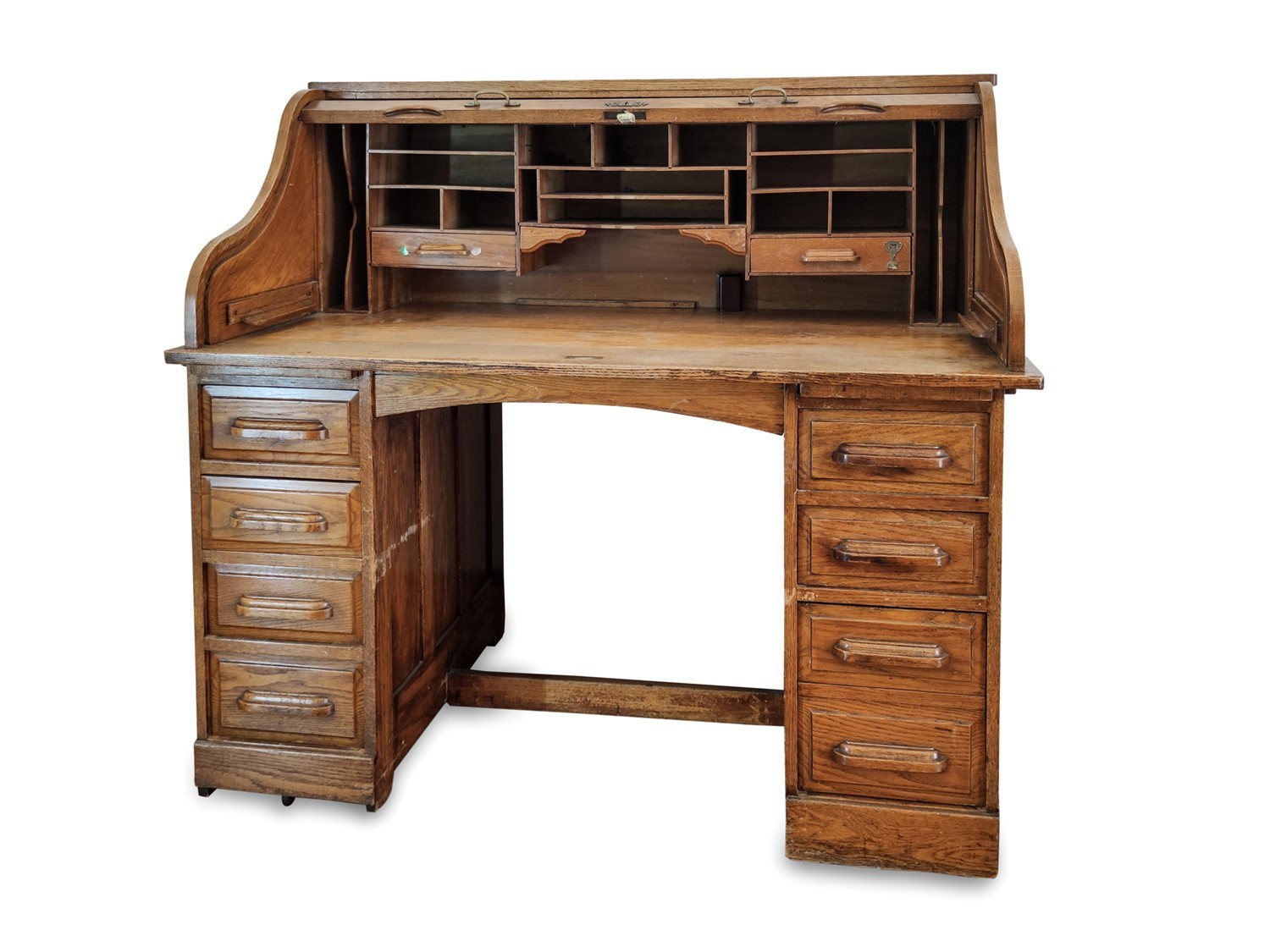 Scrivania da ufficio a serrandina in legno di rovere, secolo XX