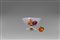 Alzata in vetro soffiato color ambra, Murano, inizio secolo XX, con sei frutti (alcuni con rotture e mancanze)