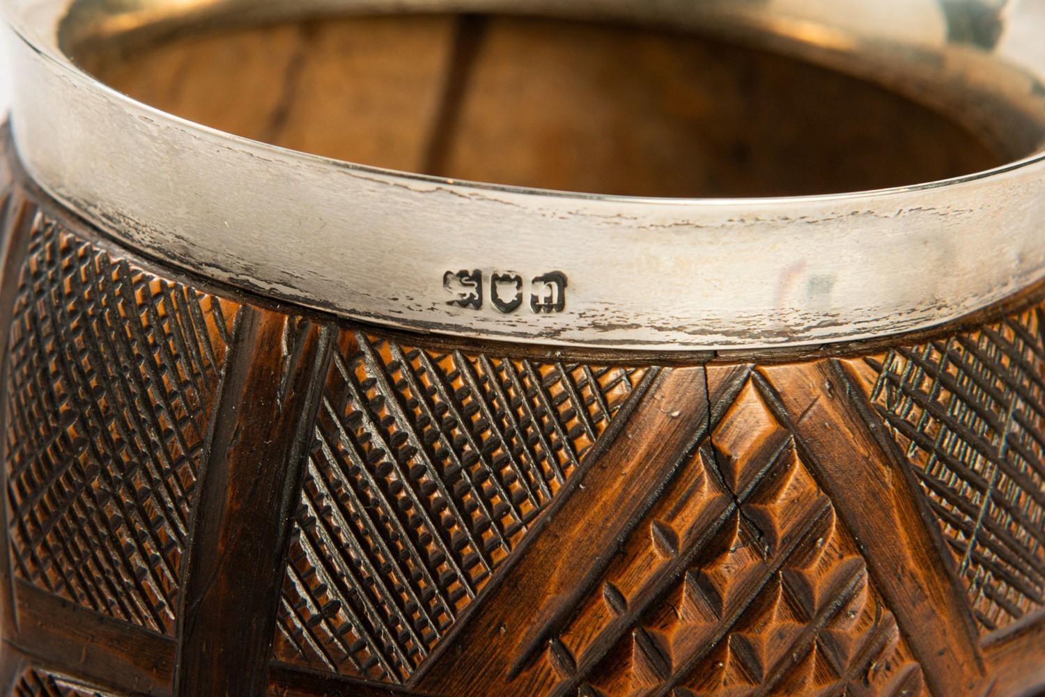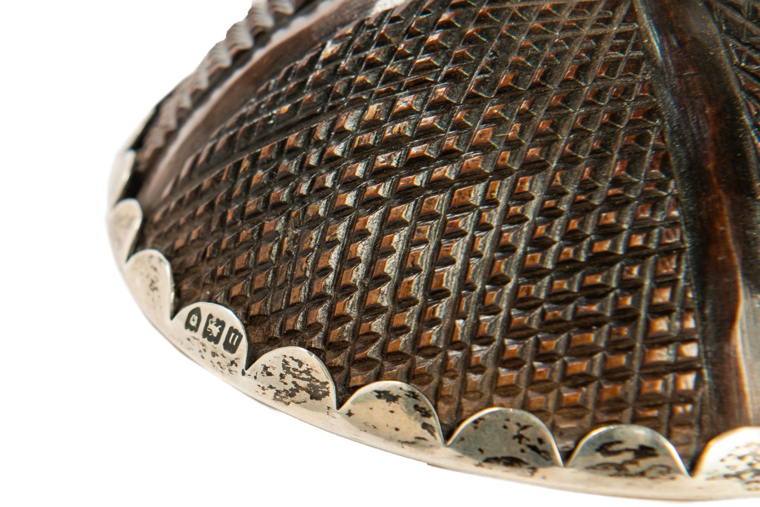 Noce intagliata e montata a calice, con finiture in argento, Inghilterra inizio secolo XX