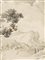 Scuola italiana del XIX secolo - Scorcio di paese montano in riva al lago