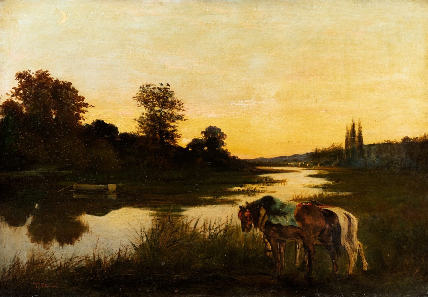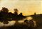 Scuola italiana fine XIX - inizi XX secolo - Paesaggio fluviale al tramonto