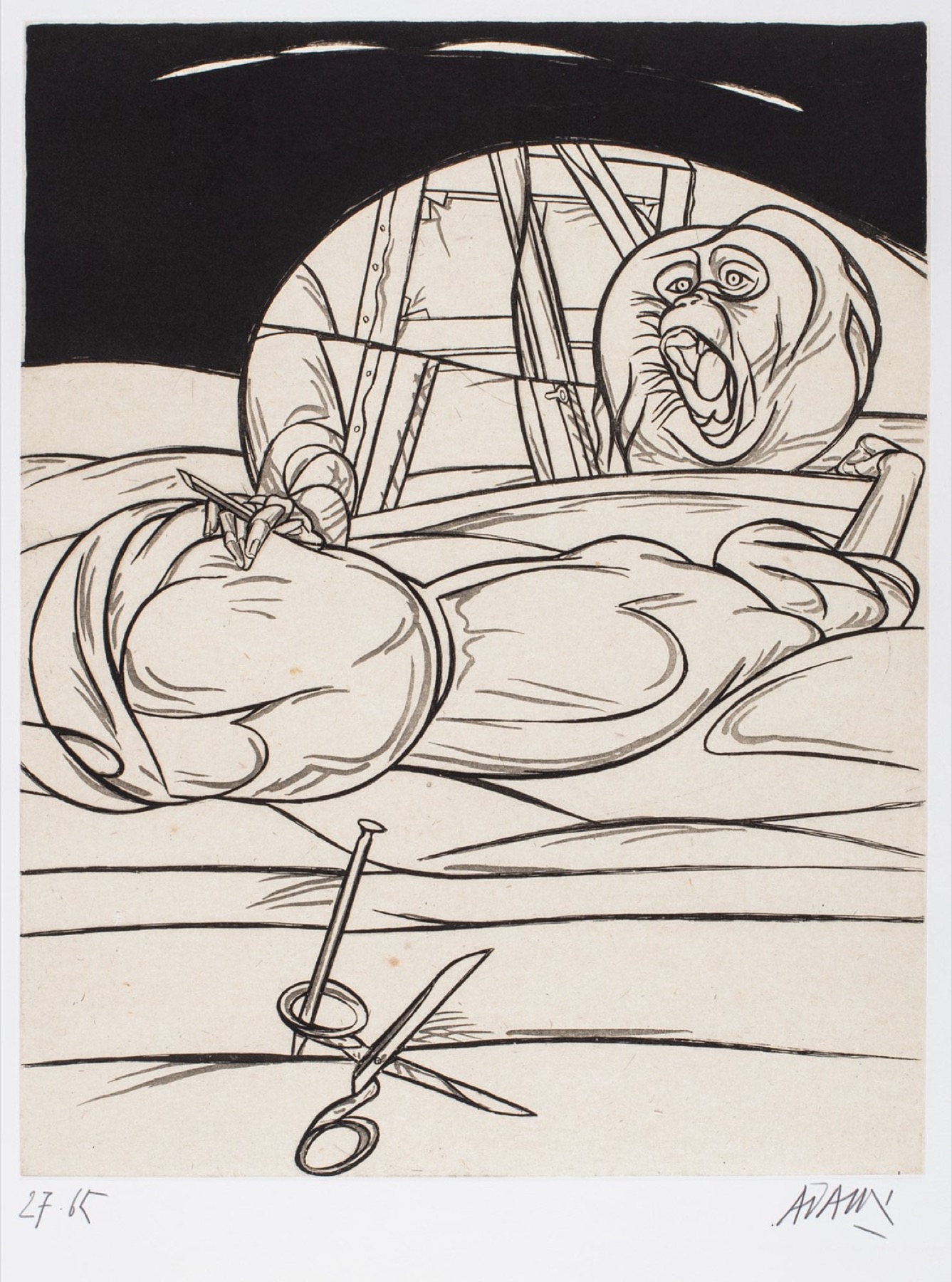 Valerio Adami (Bologna 1935) - Reclining nude - Leone, 1984