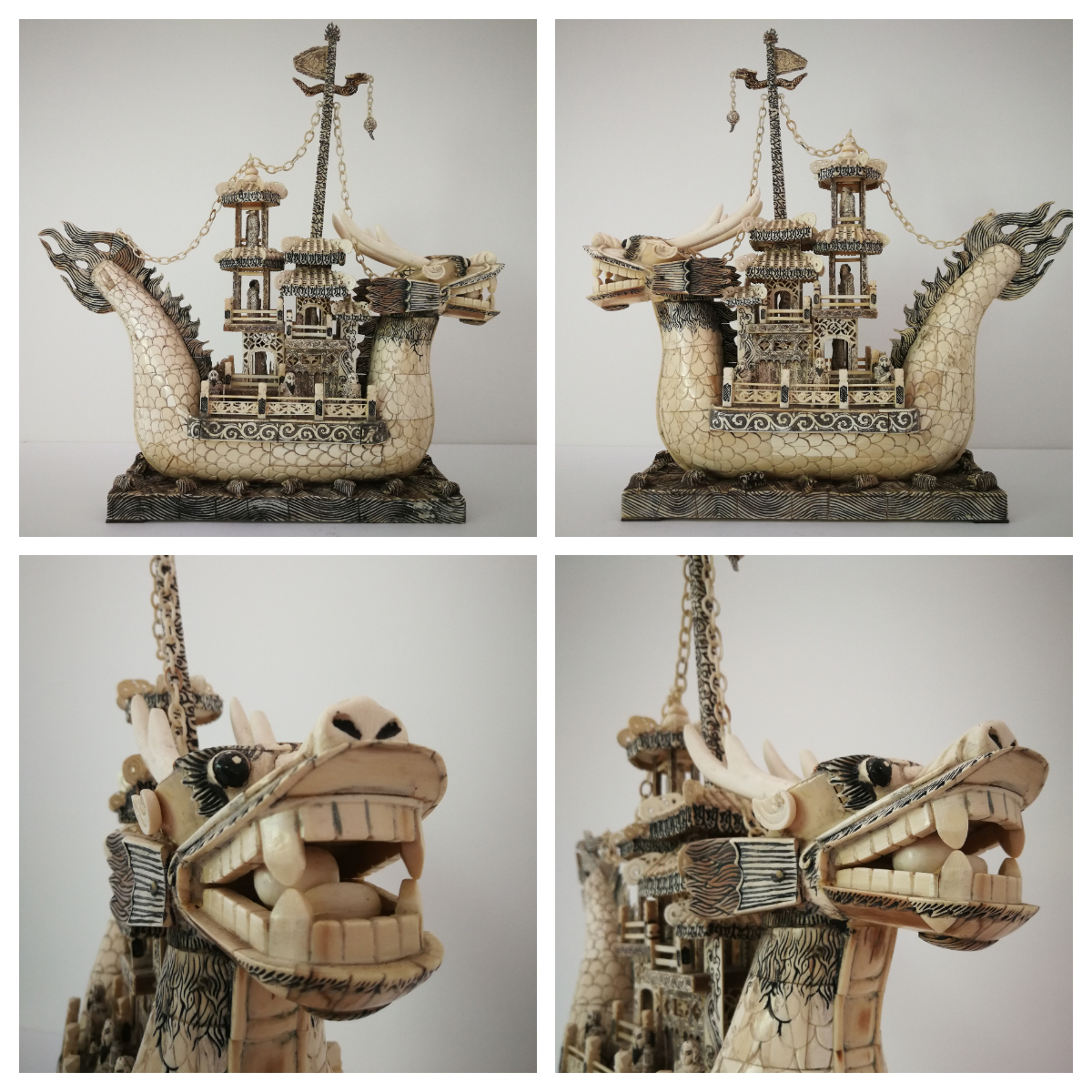 Scultura, riproduzione in osso periodo Meiji. Dimensioni: H 45 cm, L 46 cm, P 12 cm.