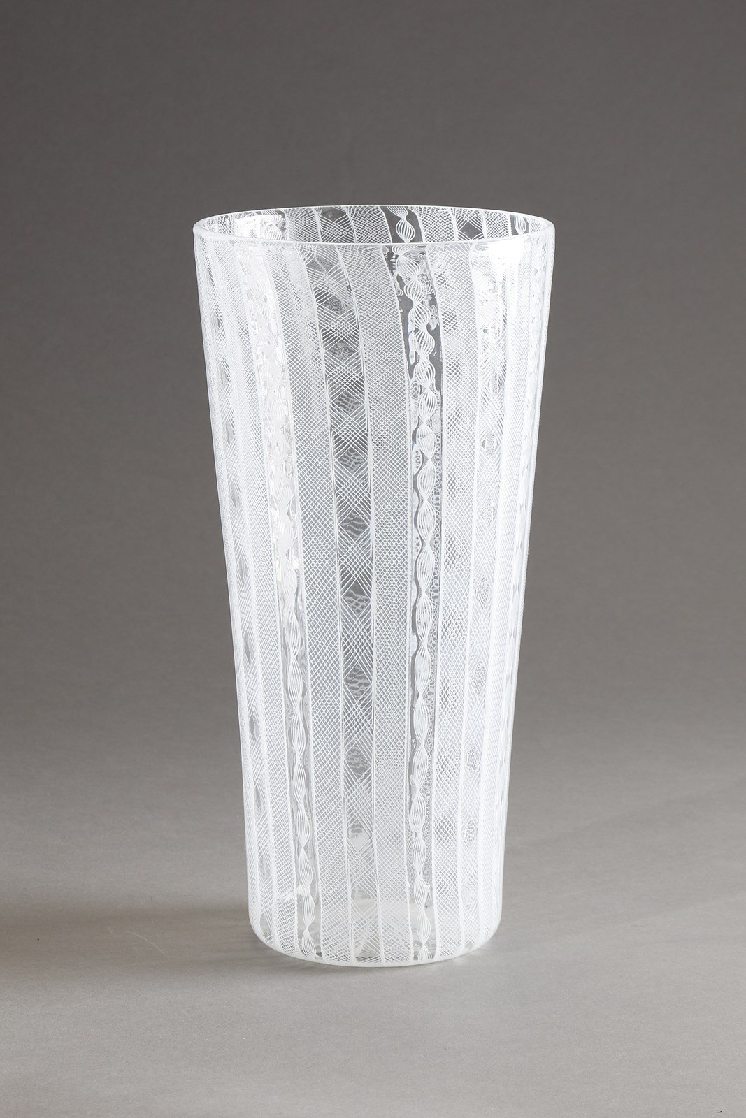Lotto 1 | VENINI PAOLO (1895 - 1959) - (attribuito) Vaso a canne verticali di zanfirico e lattimo, anni '50.