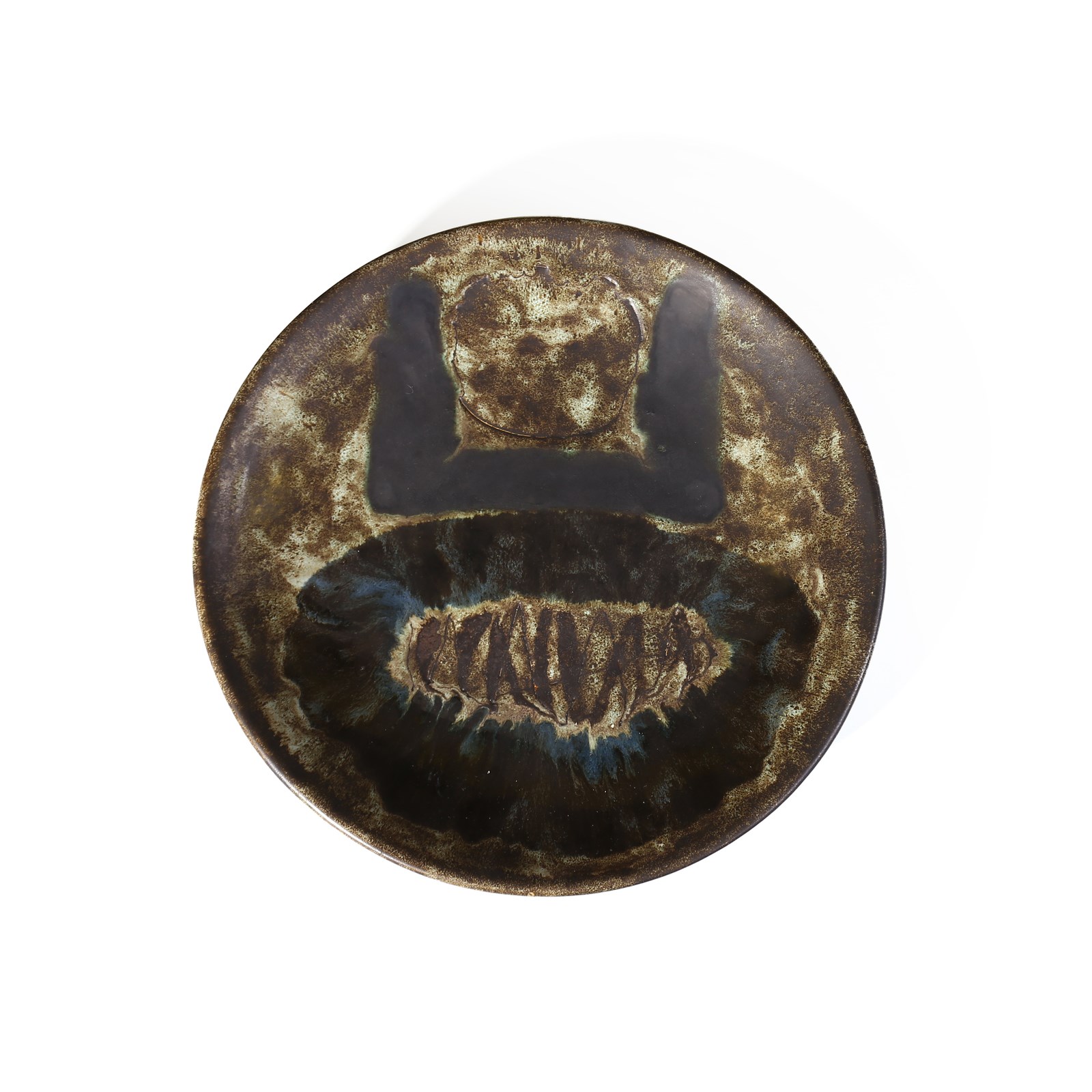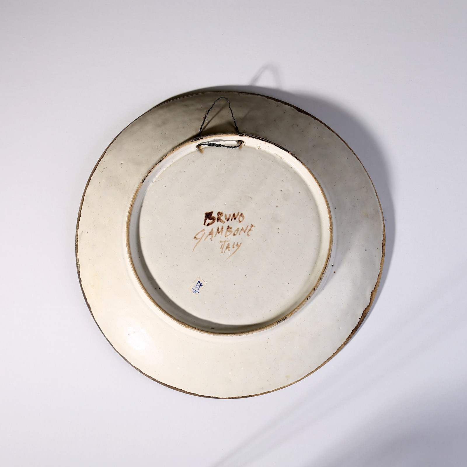 GAMBONE BRUNO (n. 1936) Piatto anni '60. Ceramica policroma.. Cm 37,00 x 37,00 x 5,00. Firma dell'autore.