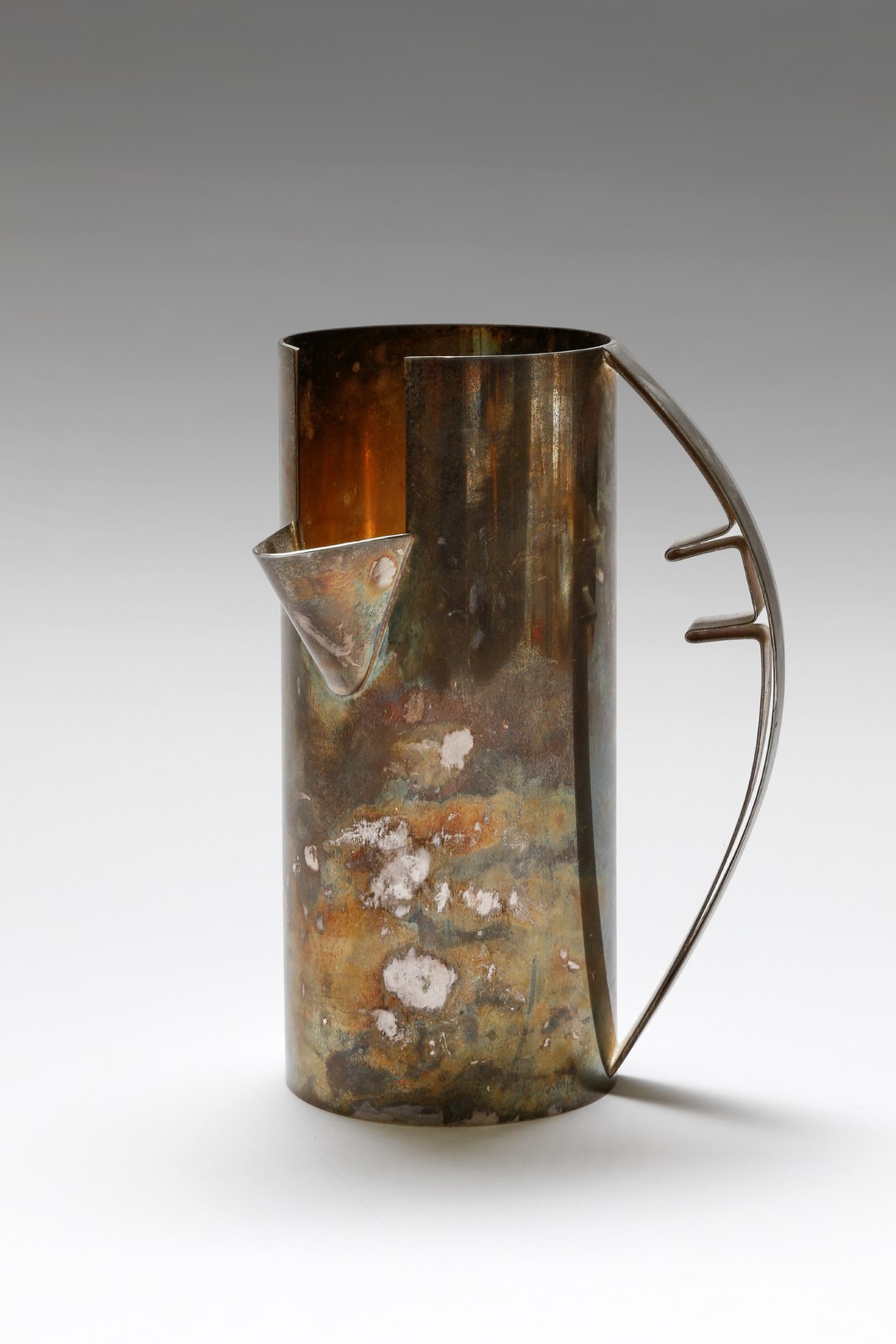 SCARPA CARLO (1906 - 1978) Brocca per Cleto Munari, anni '70. Silver plate. Cm 13,00 x 22,00 x 18,00. Marchio e firma incussi alla base.