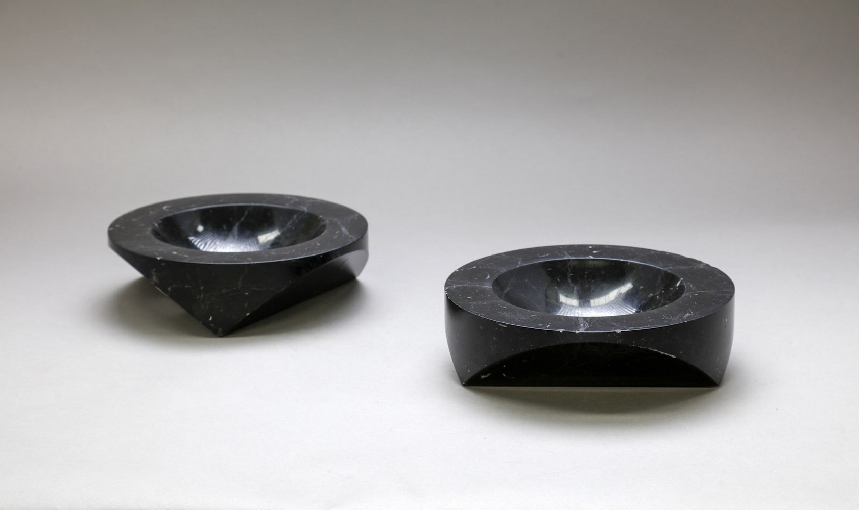 MARI ENZO (n. 1932) Coppia di svuotatasche produzione Danese Milano, anni '70. . Marmo. Cm 25,00 x 7,00 x 25,00. Etichetta della manifattura.