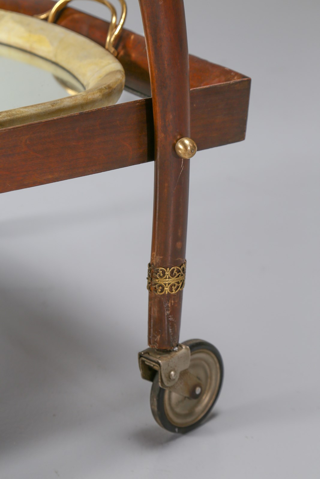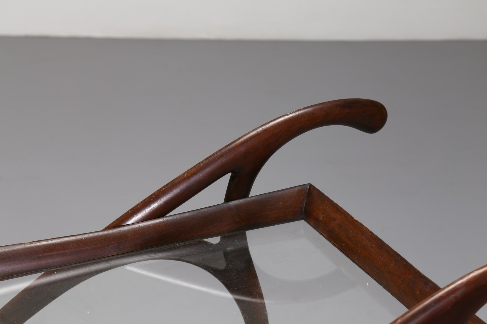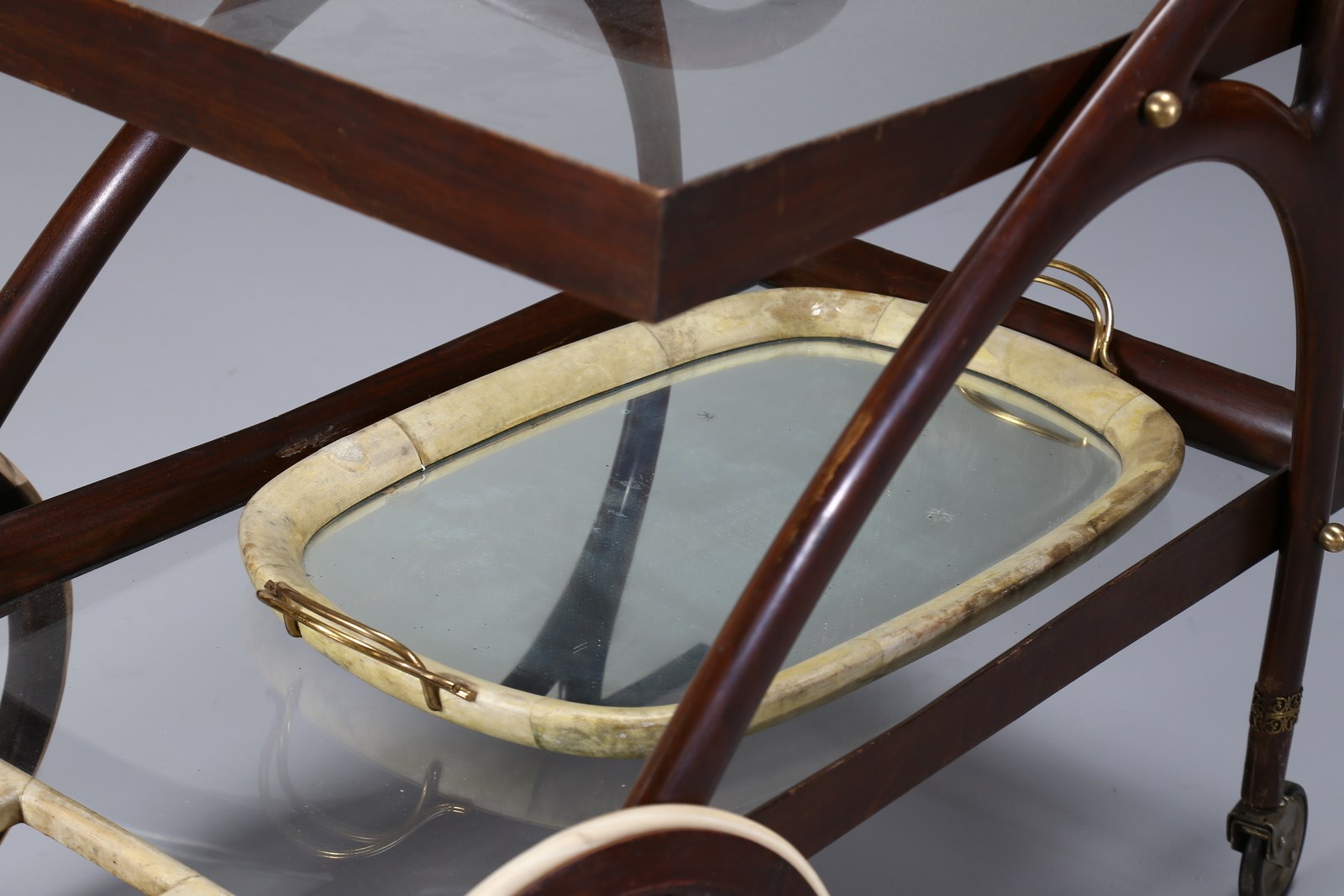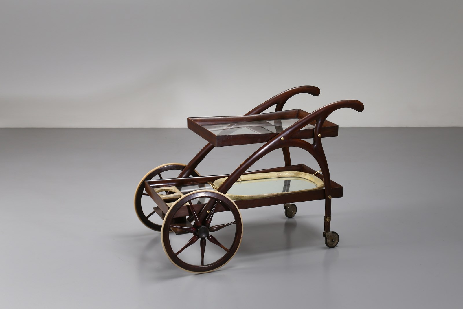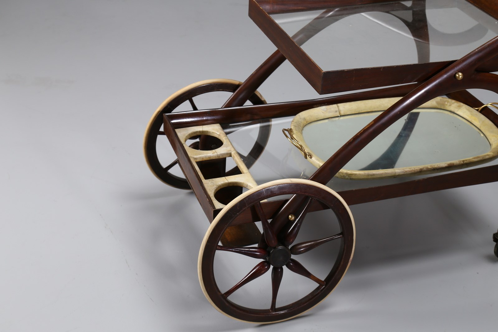 TURA ALDO Carrello anni '50. Legno, pergamena e cristallo molato.. Cm 48,00 x 70,00 x 86,00.