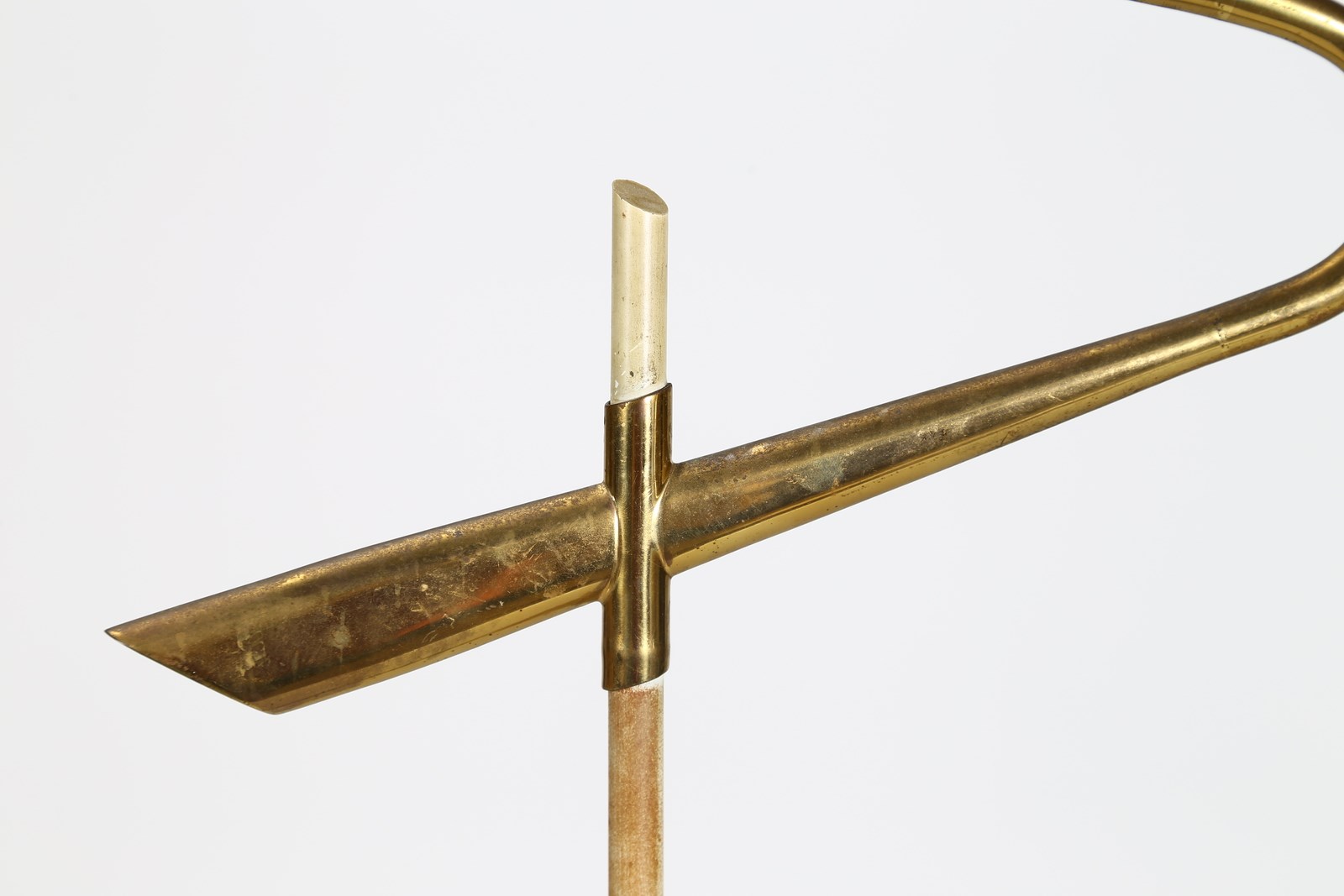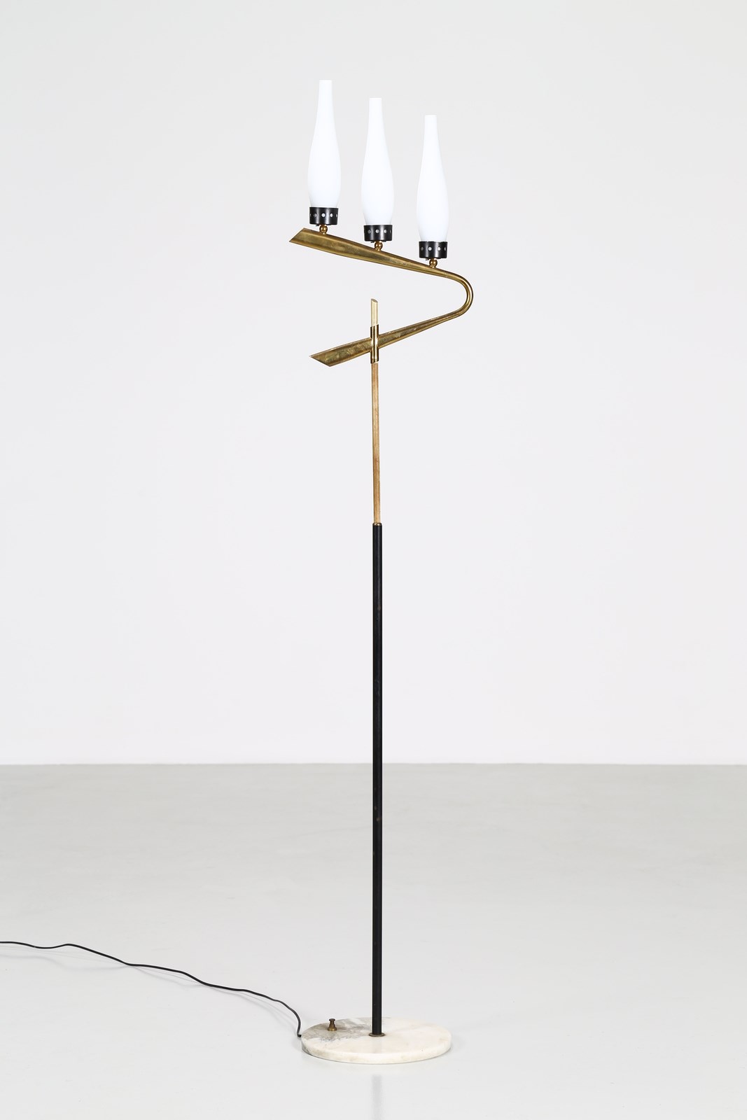 MANIFATTURA ITALIANA Lampada da terra anni '50. Metallo verniciato, alluminio verniciato, ottone e marmo.. Cm 34,00 x 177,00 x 28,00.
