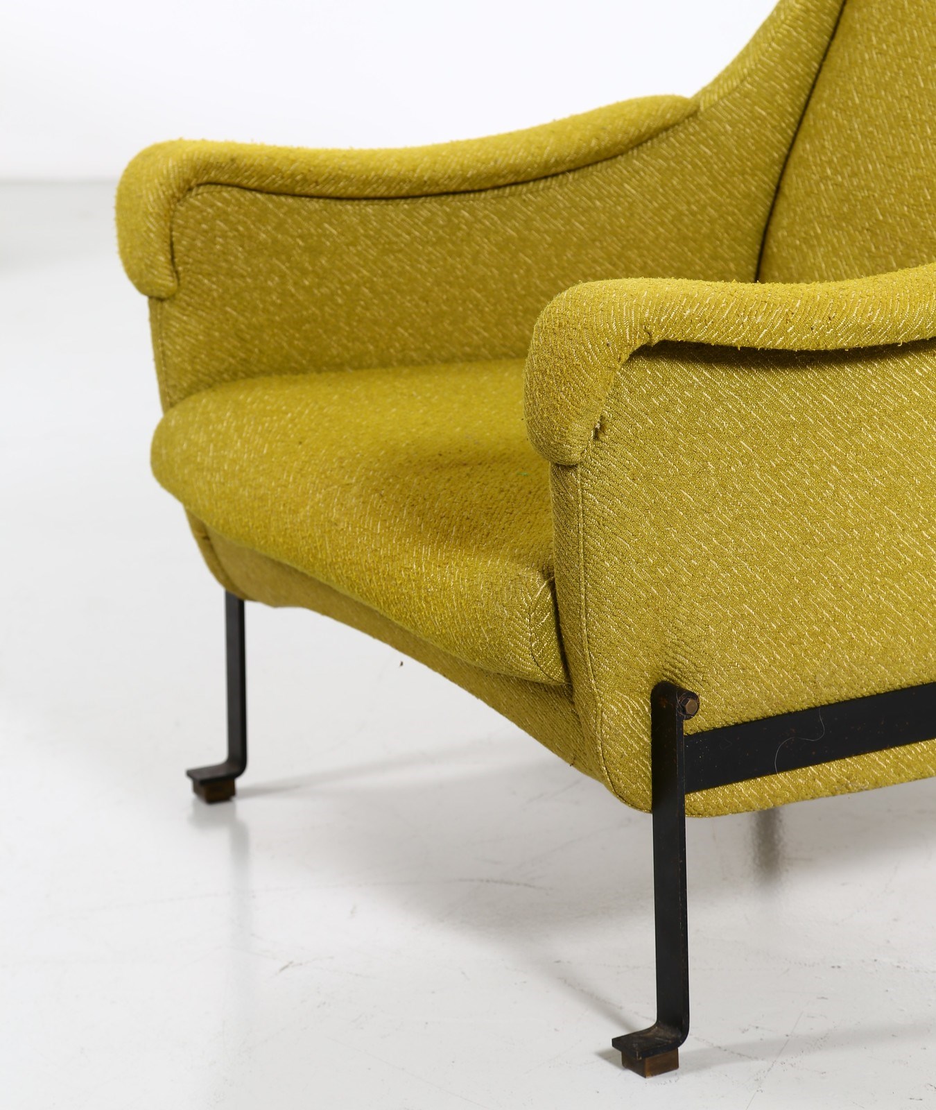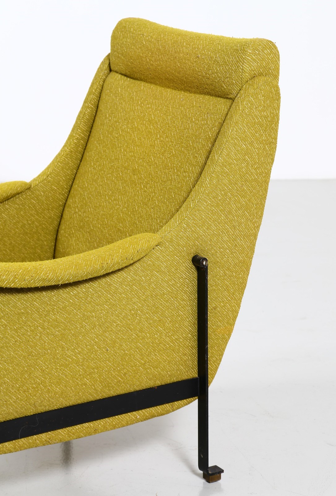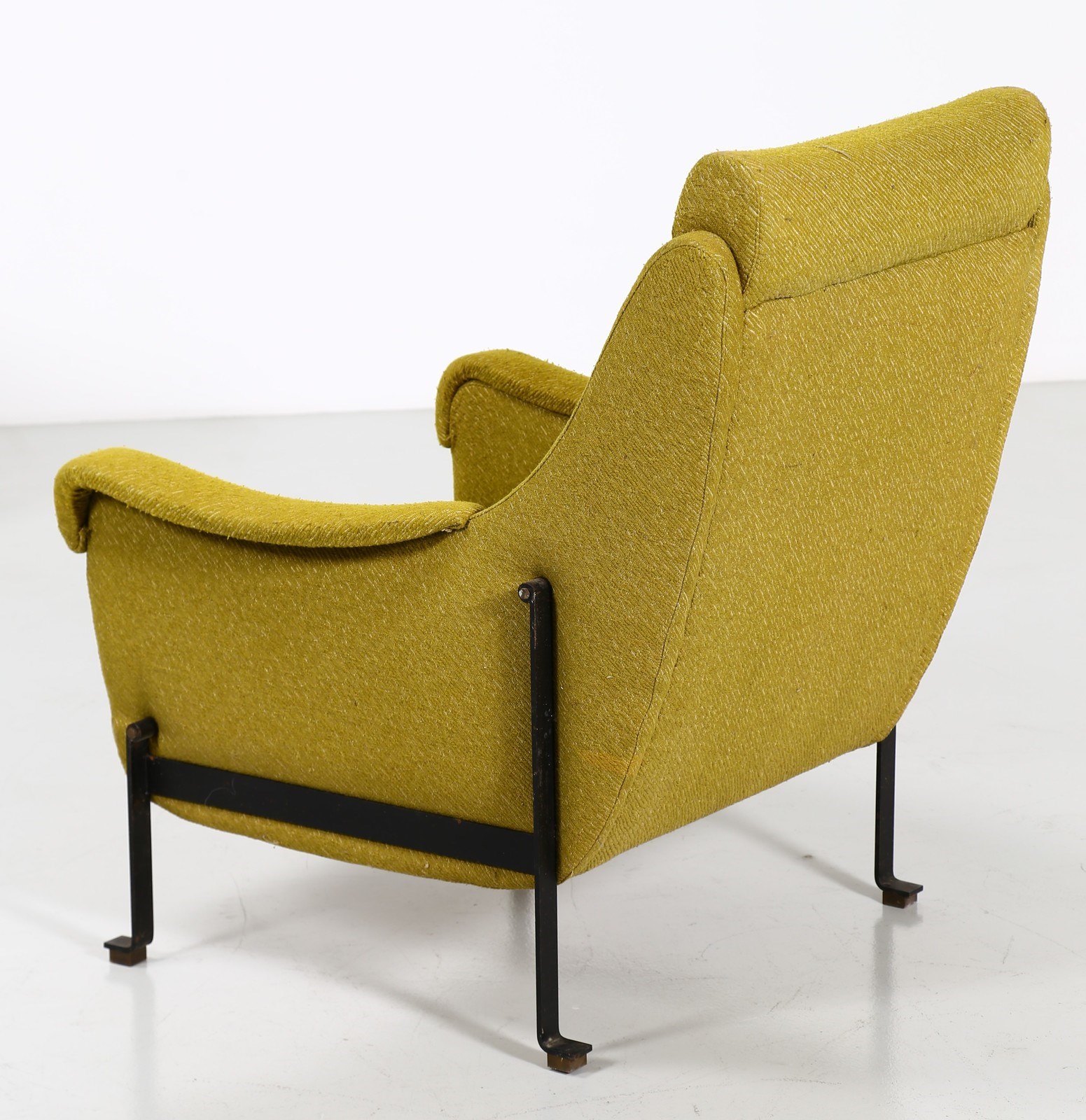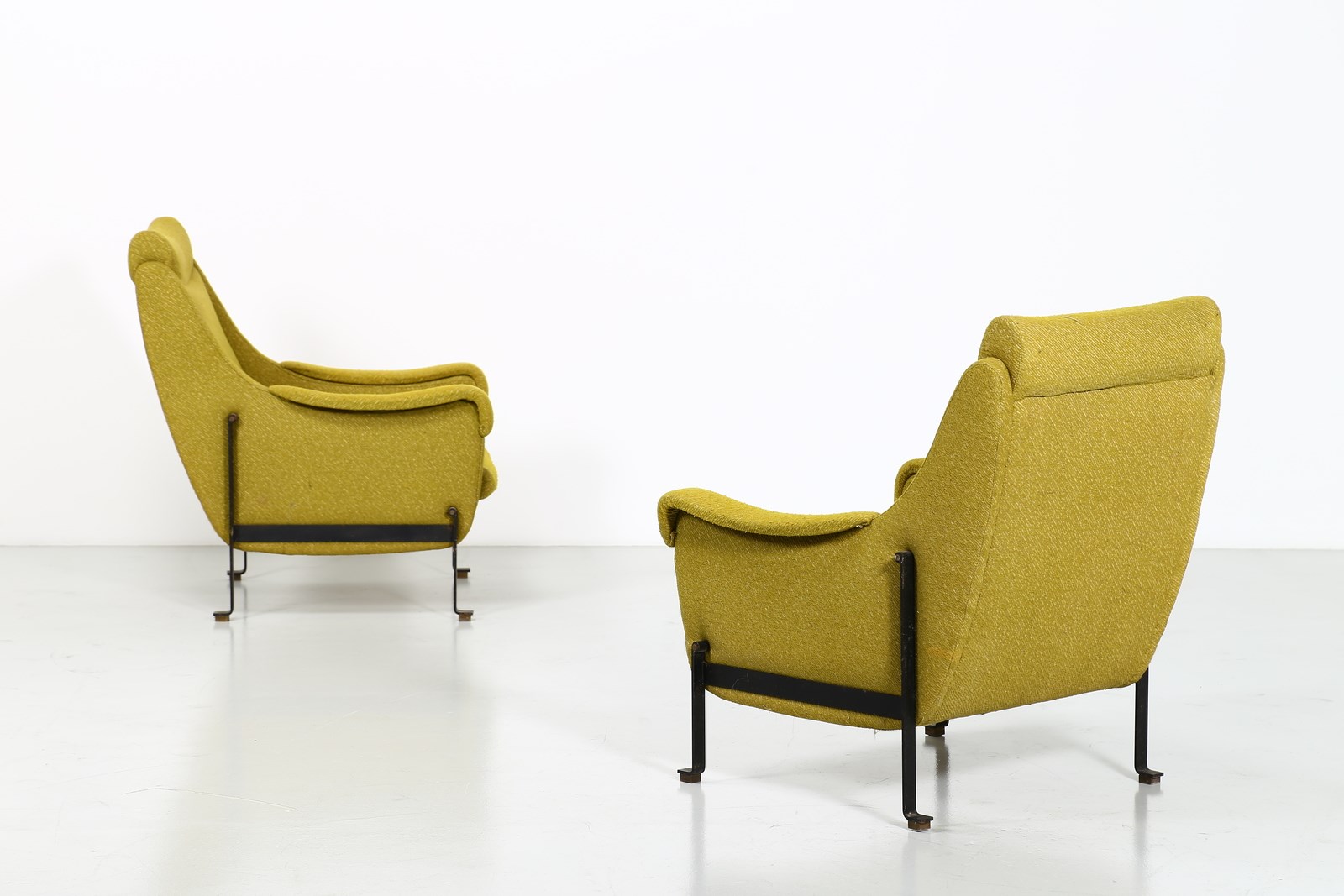 RADICE GIGI Coppia di poltrone anni '60. . Metallo e tessuto. Cm 80,00 x 91,00 x 72,00.