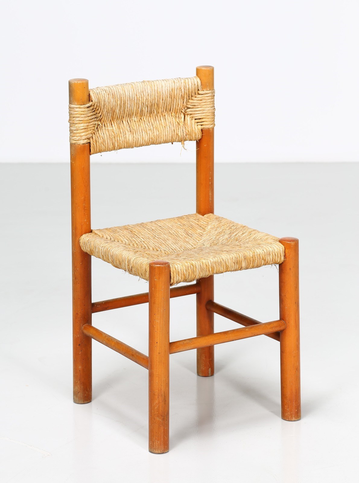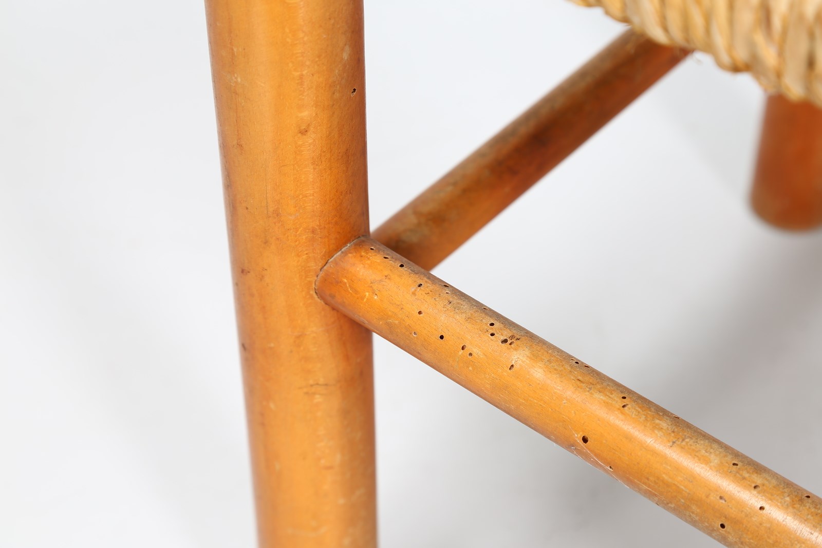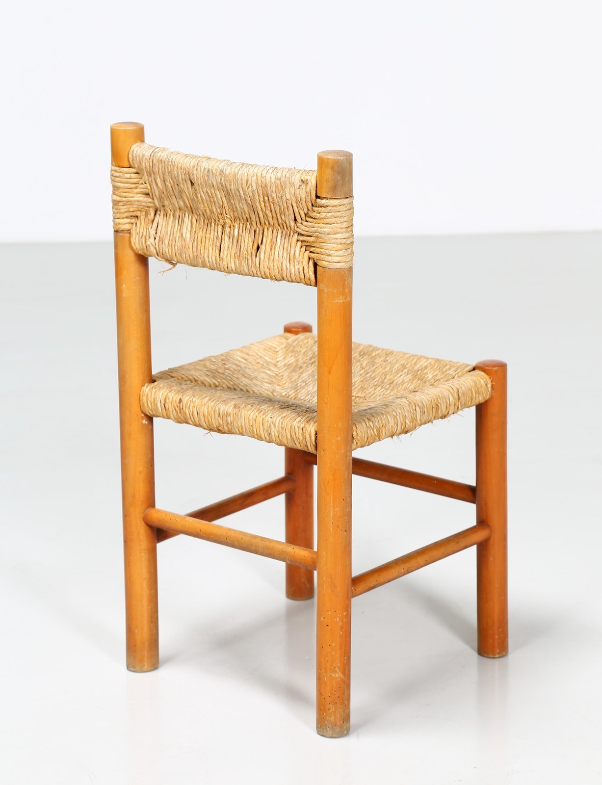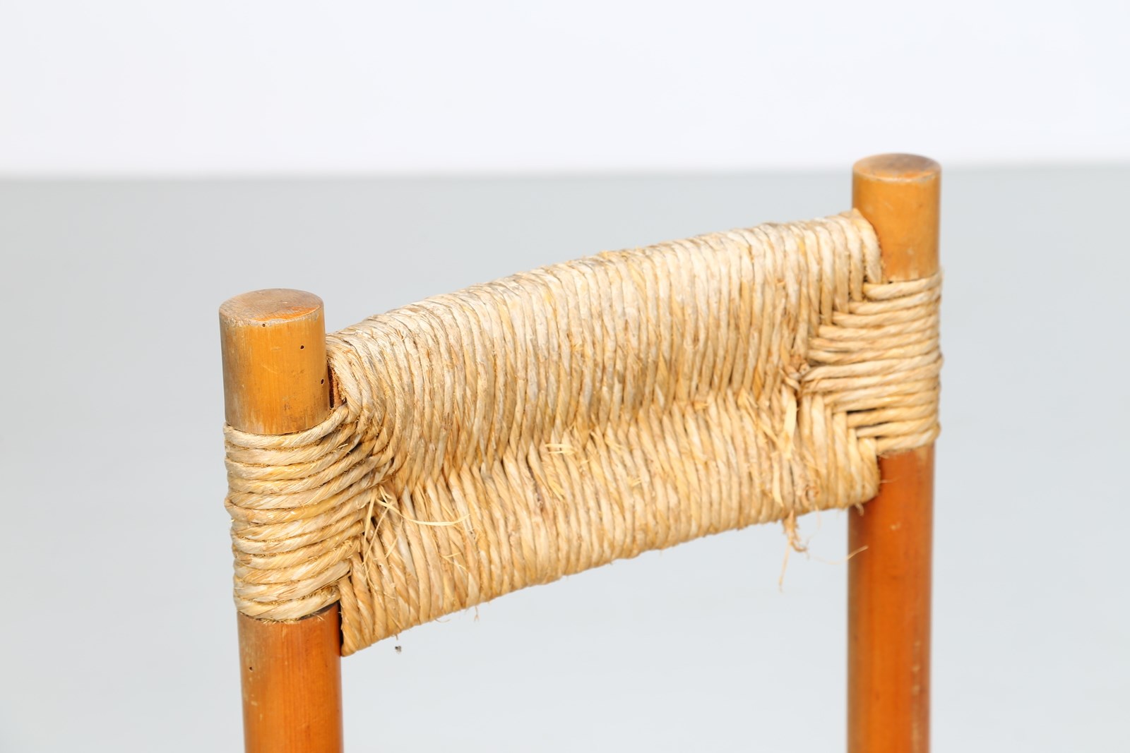 PERRIAND CHARLOTTE (1903 - 1999) Cinque sedie modello Meribel anni ''50. . Legno di quercia e paglia.. Cm 42,50 x 84,00 x 43,50.