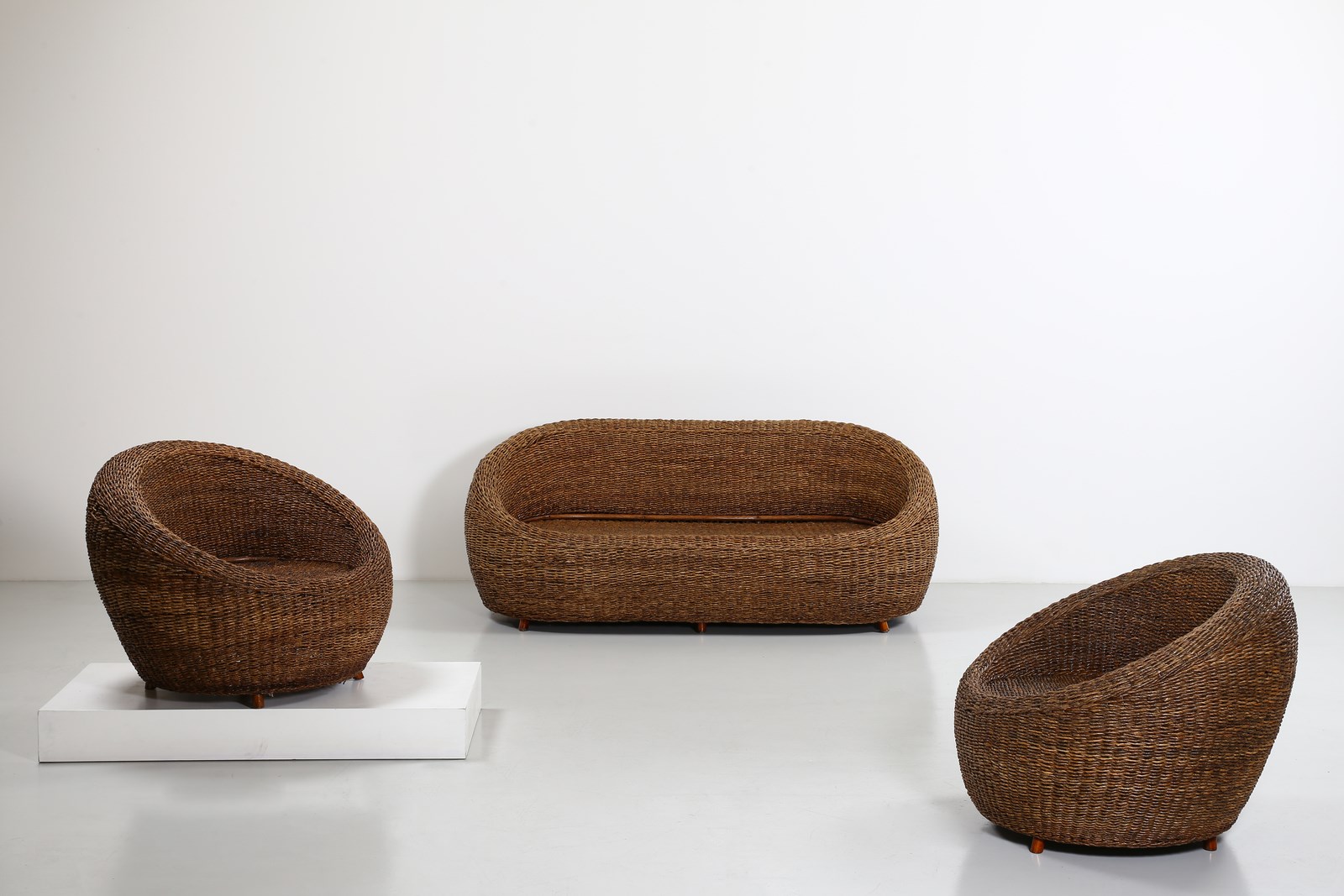 Lotto 250 | MANIFATTURA ITALIANA - Divano e coppia di poltrone anni '70.