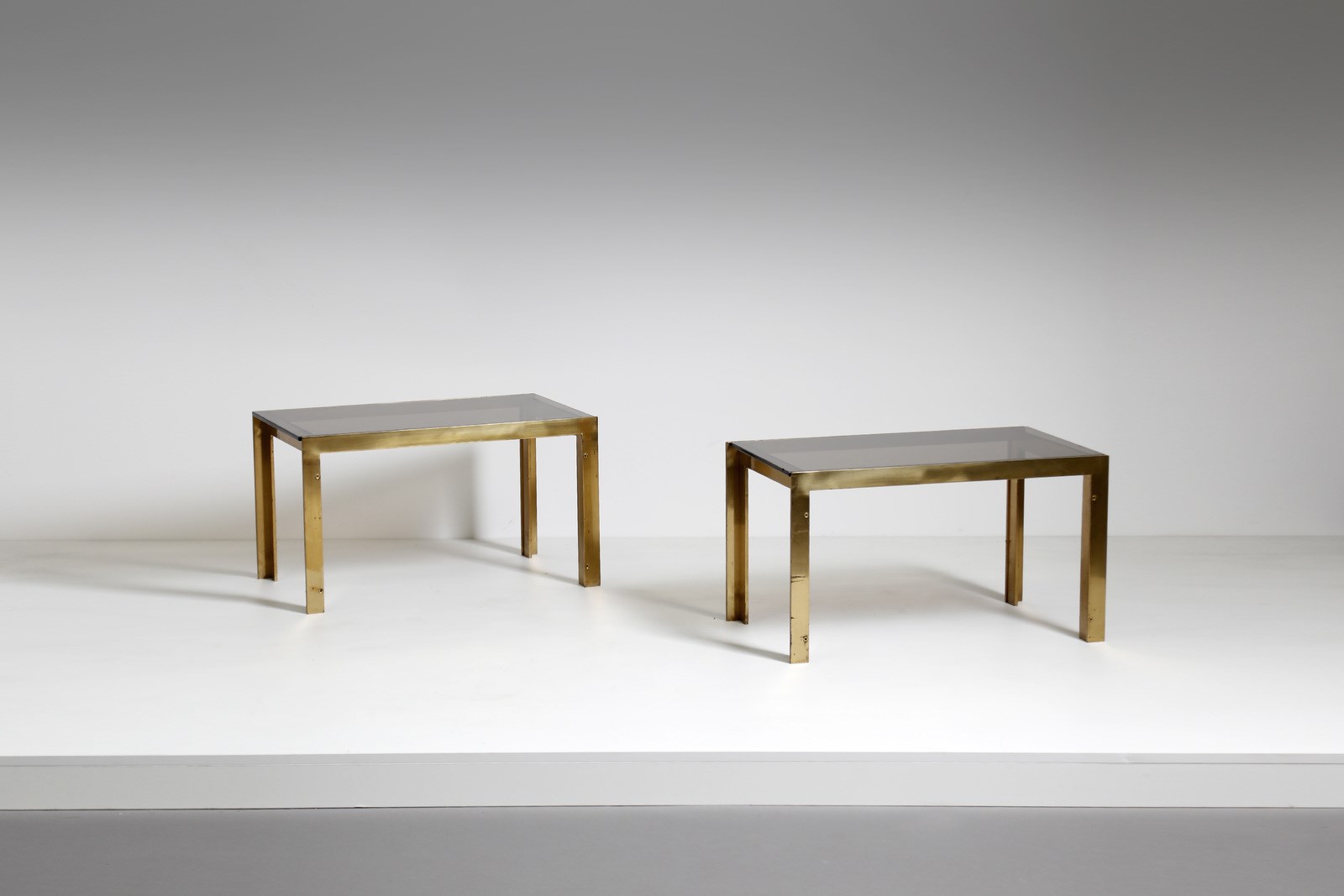 FONTANA ARTE (attribuito) Coppia di tavolini anni '60. Ottone e cristallo molato.. Cm 70,00 x 40,00 x 41,00.