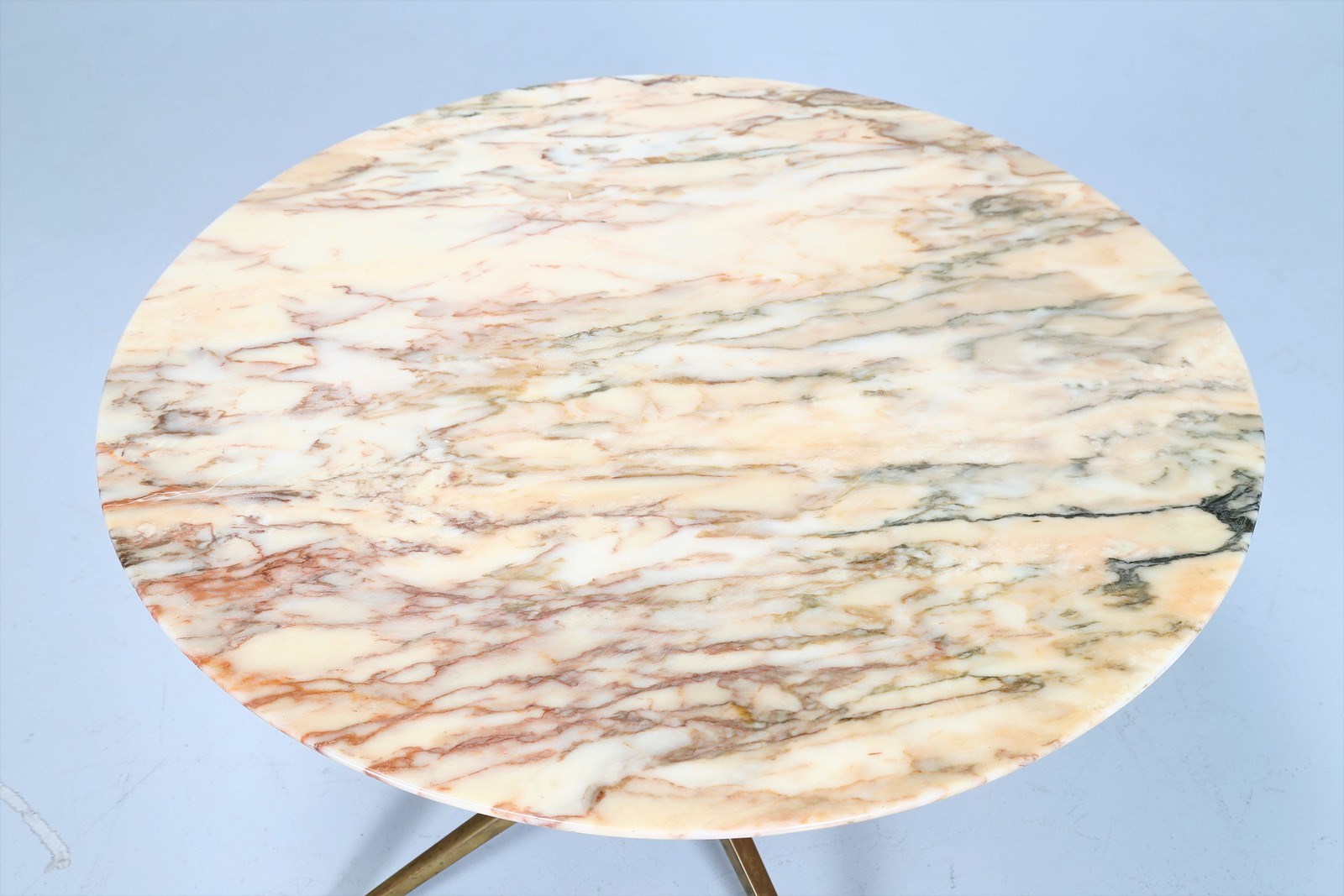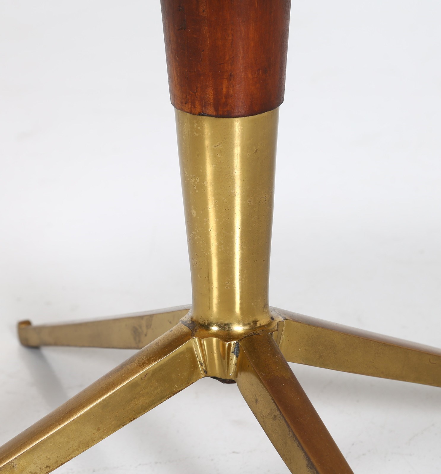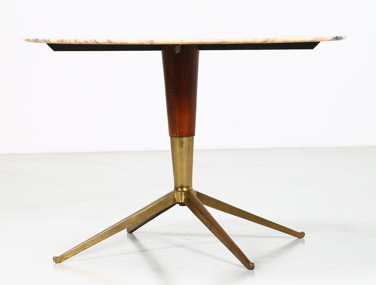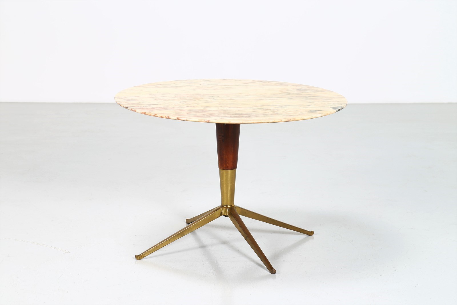 BEGA MELCHIORRE (1898 - 1976) (attribuito)Tavolino da caffè anni '50. Legno, marmo e ottone. Cm 89,50 x 60,00 x 89,50. Bibliografia (per modello simile): Catalogo Altamira, 1955, p.19