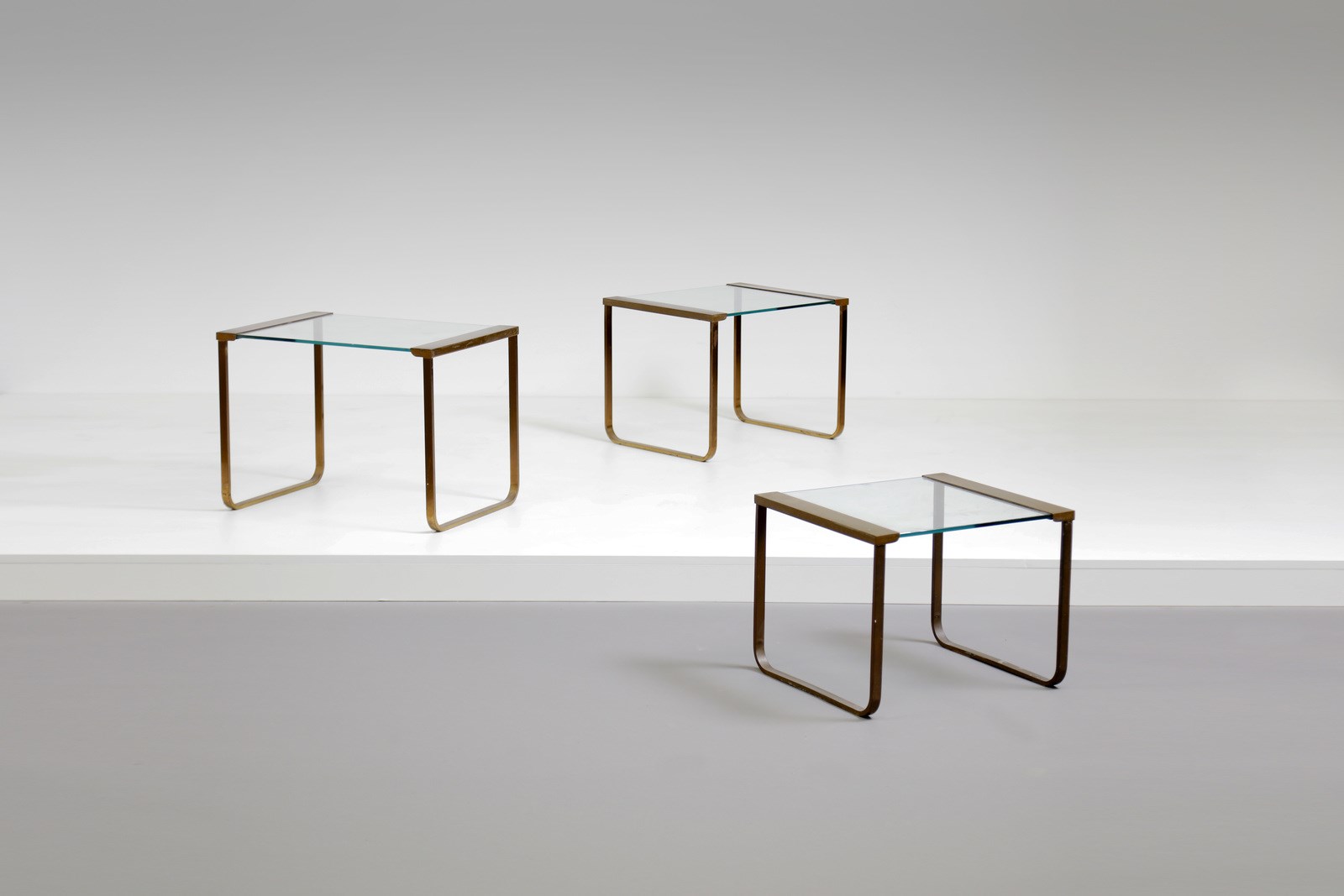 GALLOTTI E RADICE Tre tavolini a nido anni '60. Ottone e cristallo molato.. Cm 55,00 x 42,00 x 40,50.