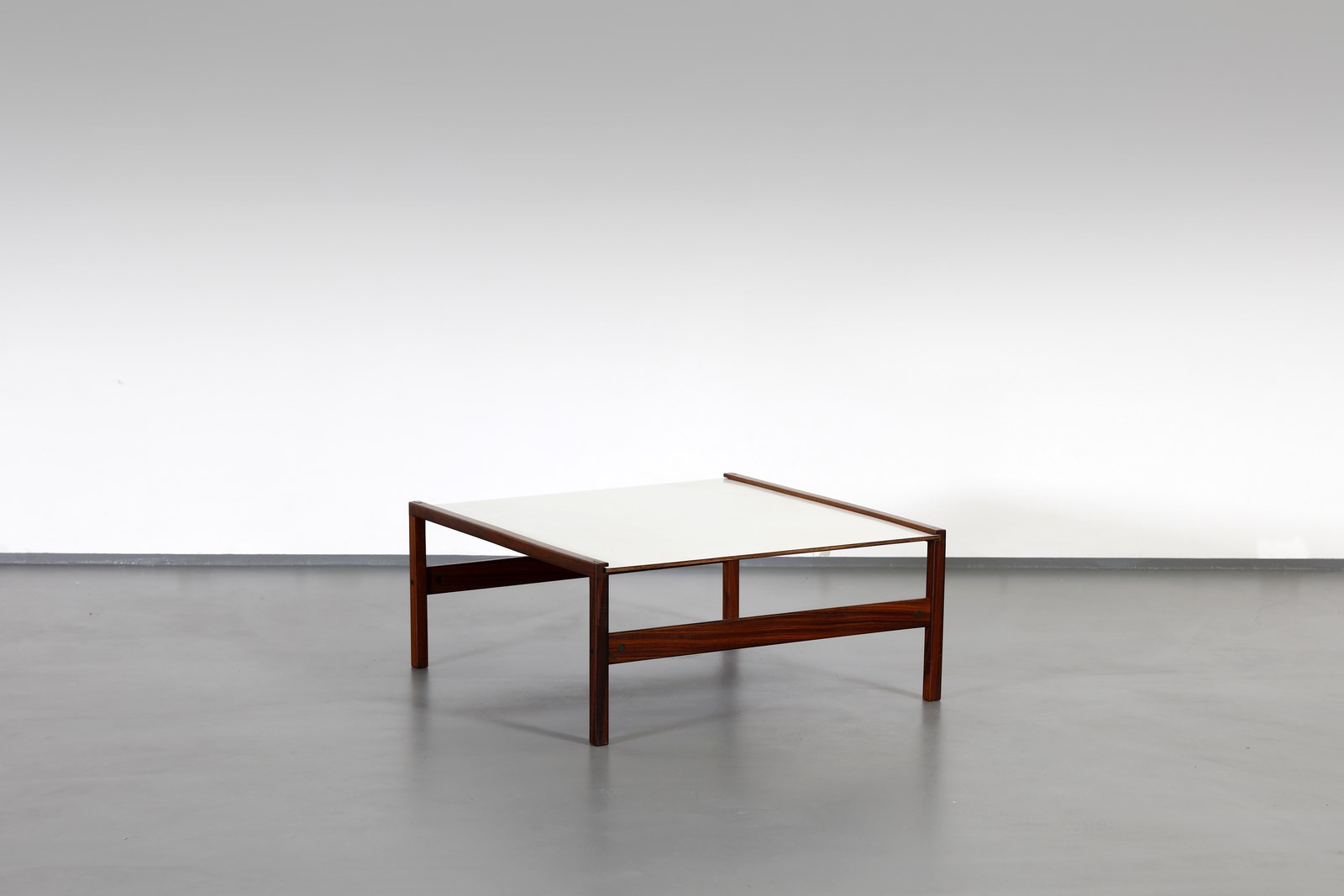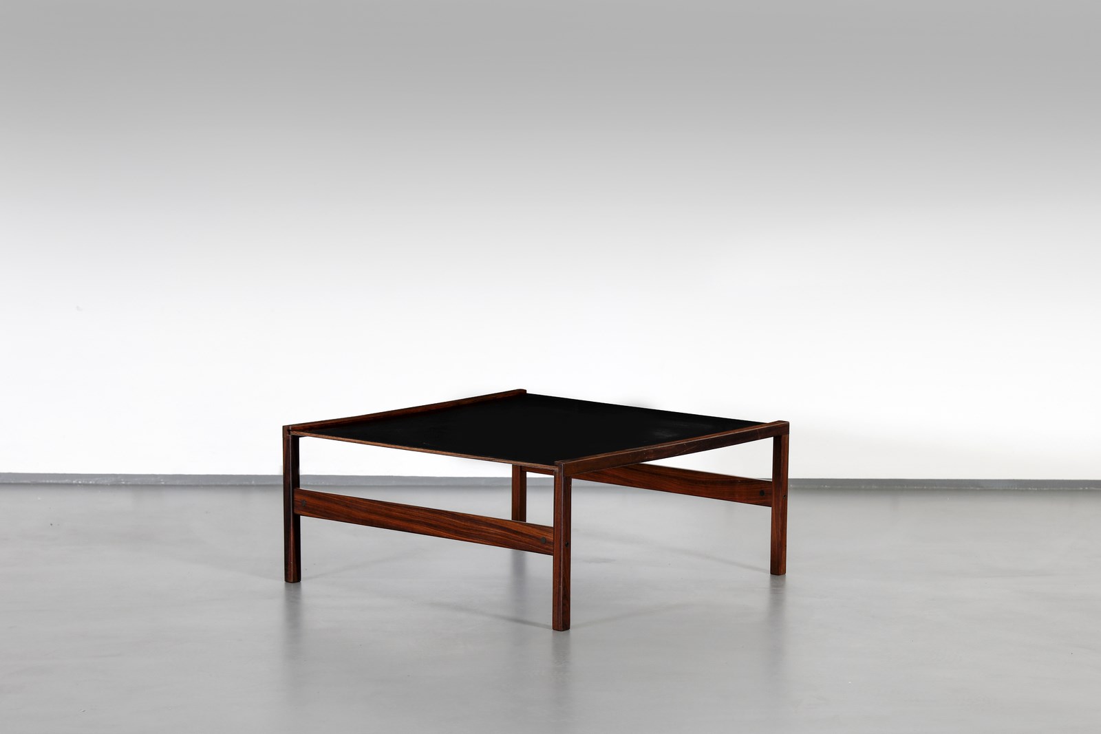 AGNOLI TITO (1931 - 2012) Tavolino anni '50. Legno di palissandro. Cm 80,00 x 35,00 x 80,00. Firma dell'autore.
