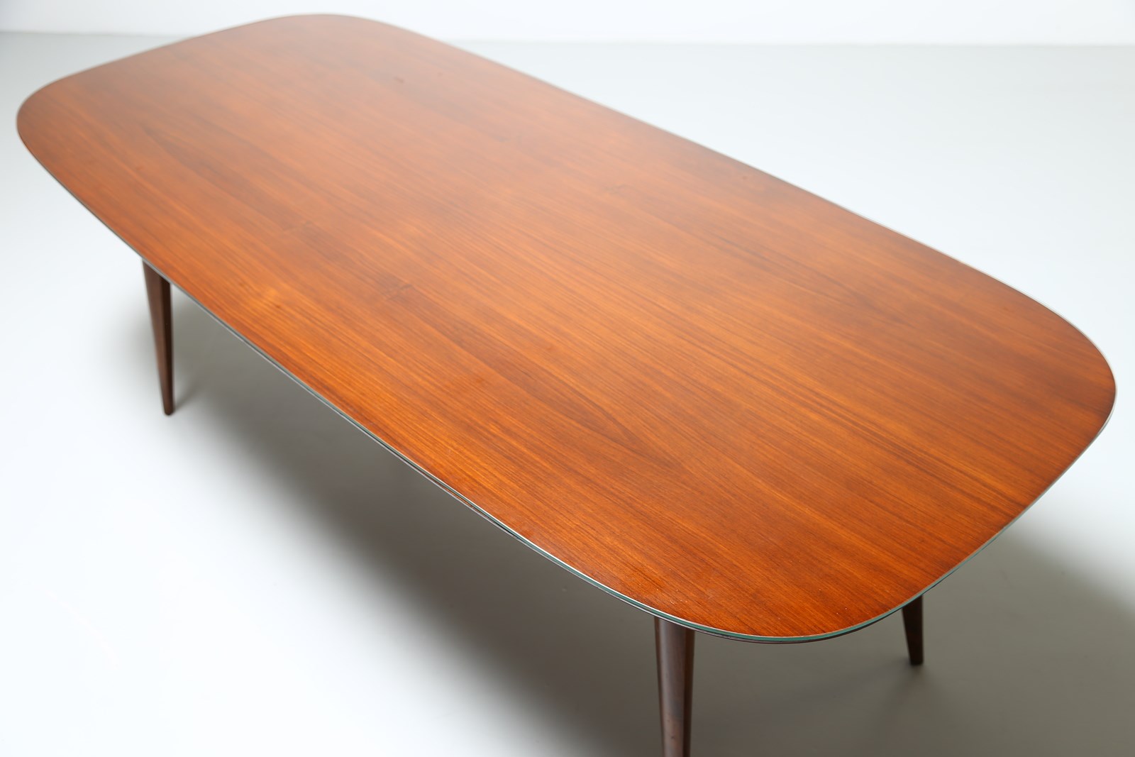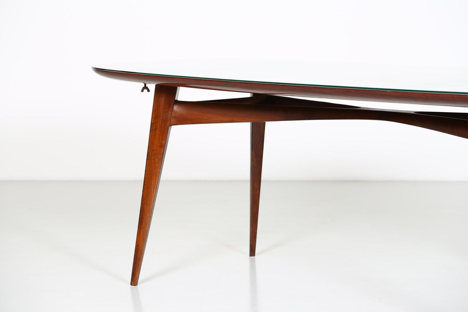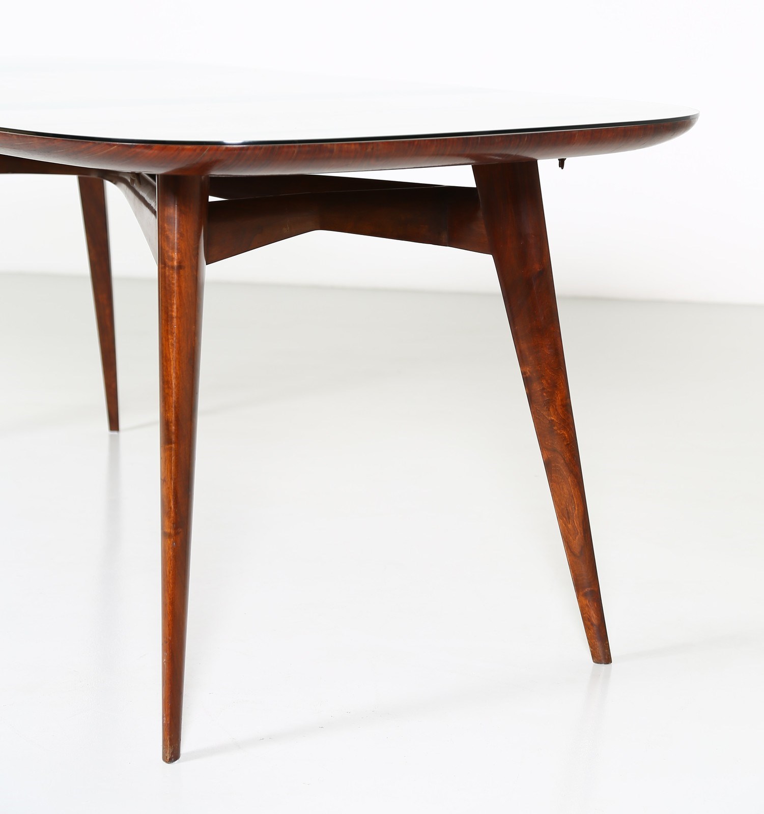 MANIFATTURA ITALIANA Tavolo anni '60. Legno di palissandro e cristallo. Cm 230,00 x 78,00 x 100,00.