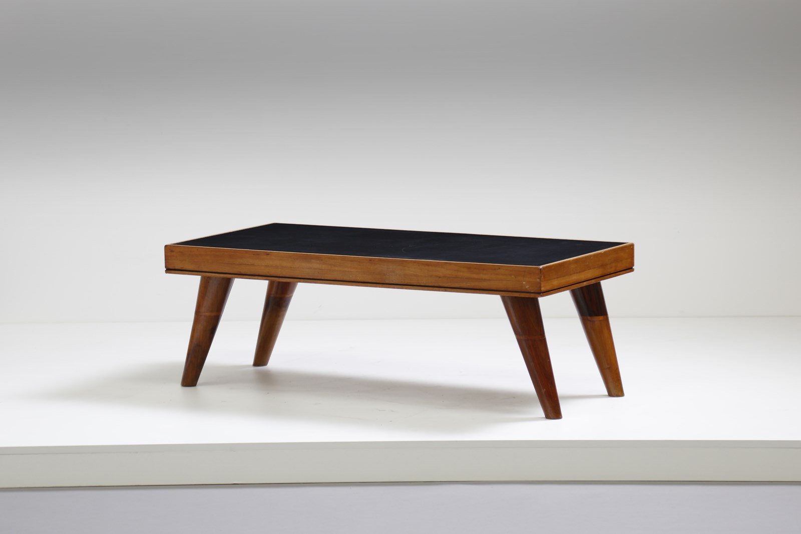 MANIFATTURA ITALIANA Tavolino da salotto anni '50. Legno di noce e legno di faggio.. Cm 113,00 x 40,00 x 56,00.