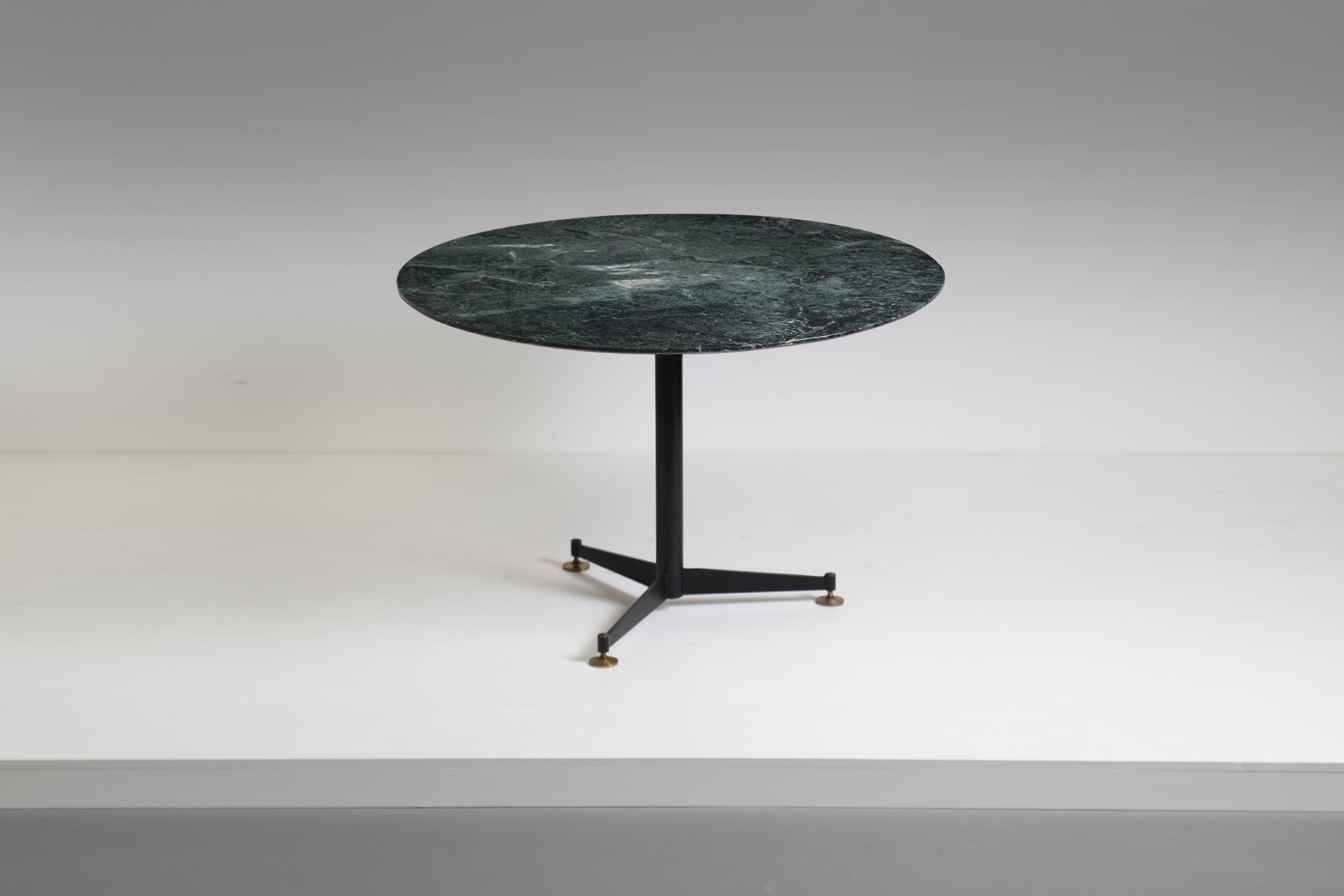 MANIFATTURA ITALIANA Tavolo anni '50. Metallo verniciato, ottone e marmo.. Cm 116,00 x 74,00.