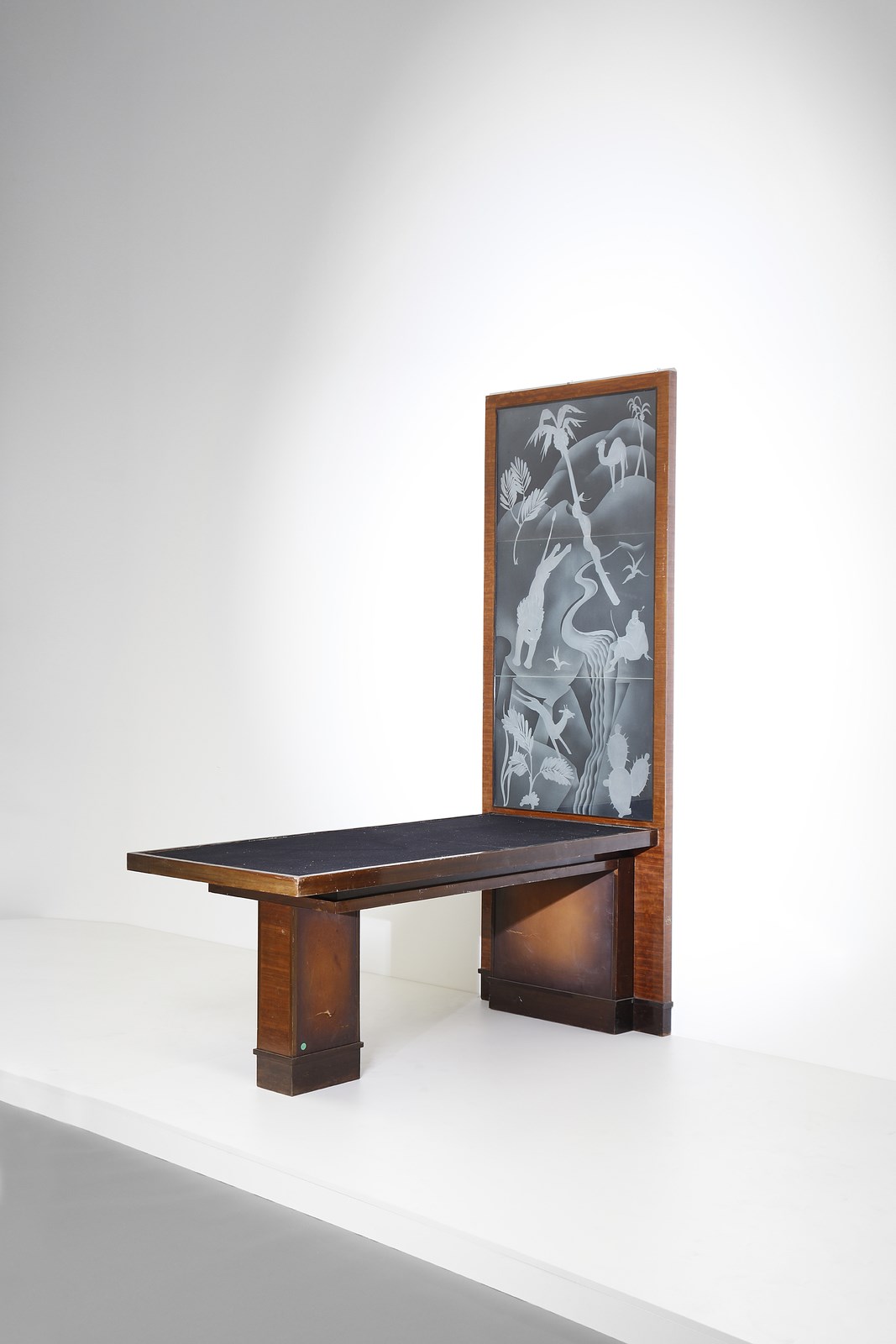MANIFATTURA ITALIANA Tavolo razionalista anni '30. Legno e cristallo molato e specchiato.. Cm 86,00 x 180,00 x 78,00.