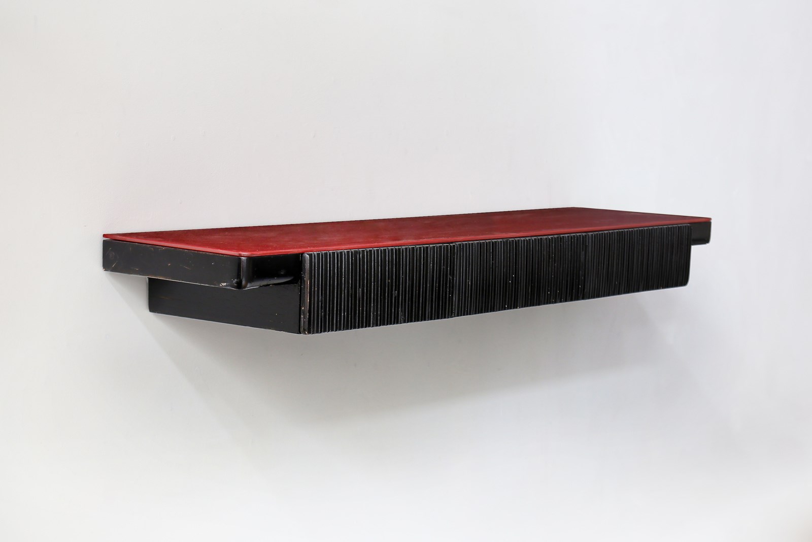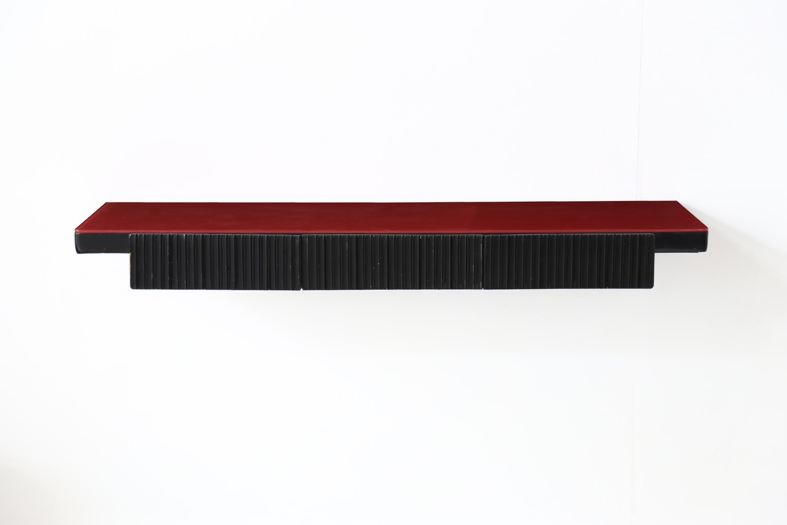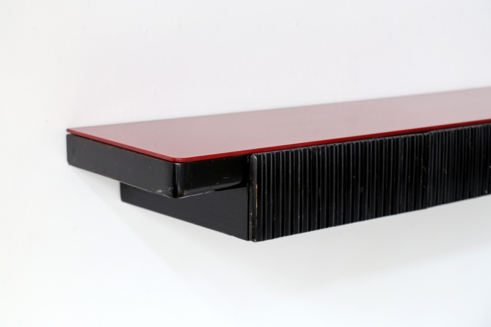 BORSANI OSVALDO (1911 - 1985) (attribuito) Consolle pensile anni '40. Legno laccato e cristallo molato. Cm 140,00 x 13,50 x 34,50.