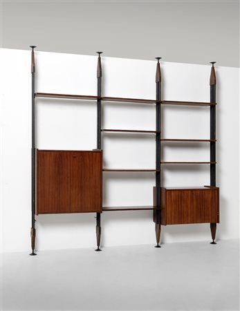 MANIFATTURA ITALIANA Libreria anni '50. Legno di palissandro e metallo verniciato.. Cm 180,00 x 230,00 x 42,00.
