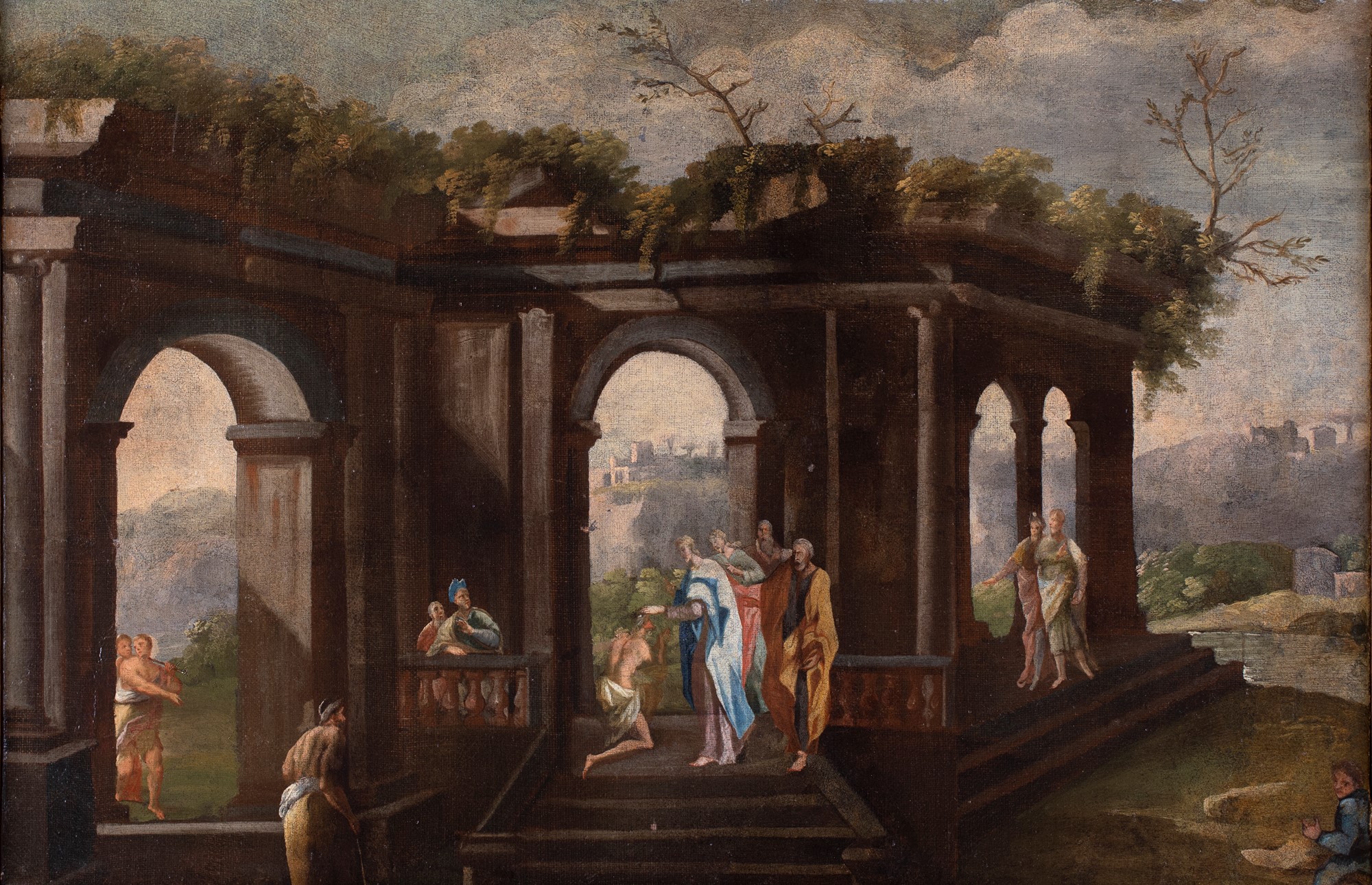 Capriccio architettonico con miracolo della guarigione del cieco - cm 67x104