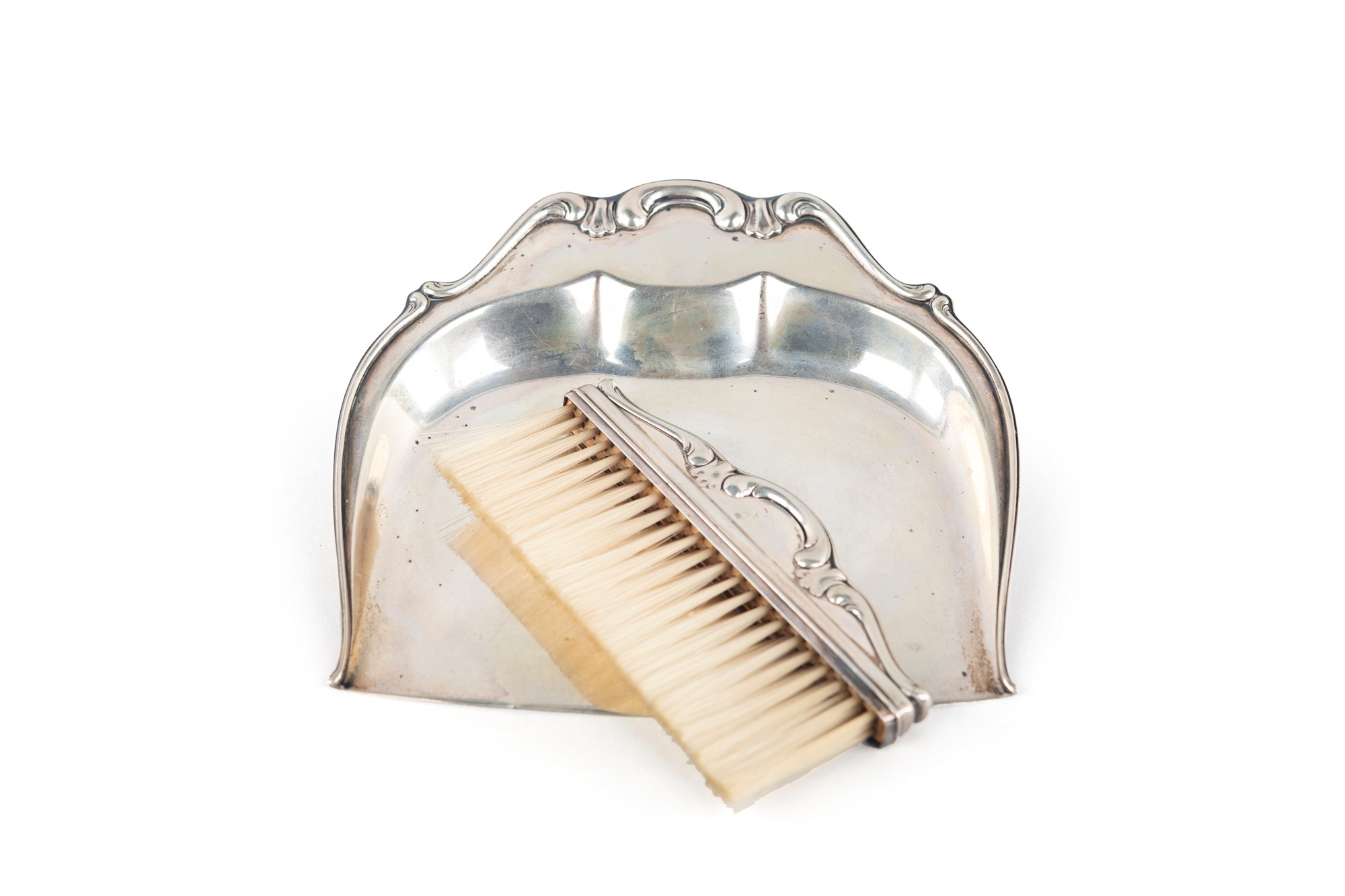 Paletta raccogli briciole e spazzola in argento, argenteria Clementi, Bologna...