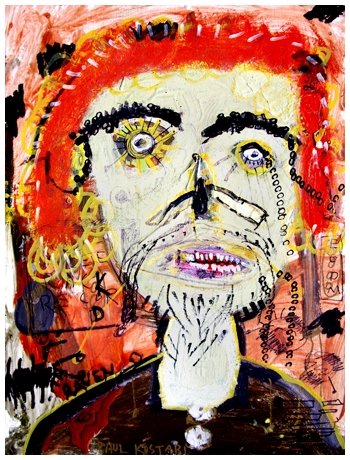 PAUL KOSTABI Whittier 1962 Faith in periwinkle Olio, t.m. e collage su cartone telato 61 x 45,6. Firma e data in b. a s.; sul verso firma e titolo. Autentica dell’autore su foto.