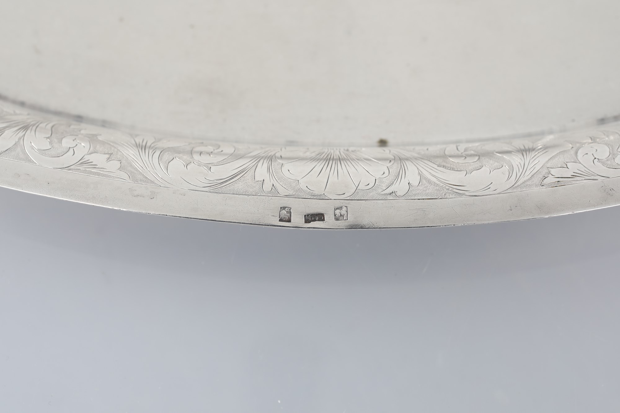 Vassoio in argento 833/1000, Sicilia, Acireale, dopo il 1826 - di forma ovale con profilo convesso decorato da volute vegetali e conchiglie incise. - cm 27x19 - gr. 360