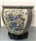 Cachepot in porcellana policroma a decoro floreale, base in legno. Cina, sec. XX (d. cm 42; h. cm 34,5) (difetti e segni d'uso)