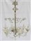 Manifattura di Murano. Coppia di lampadari a sei luci in vetro incolore decorato a steli con fiori e foglie. Bracci sagomati riuniti da catenelle (h cm 110)