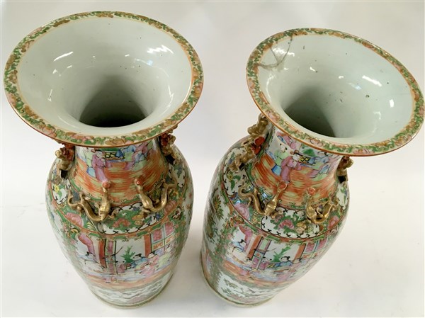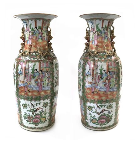 Coppia di vasi Canton Cina, sec. XIX (h. cm 58,5) (difetti e restauri)