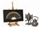 Lotto composto da due samovar, un cavalletto da pittore da tavolo ed un ventagl
