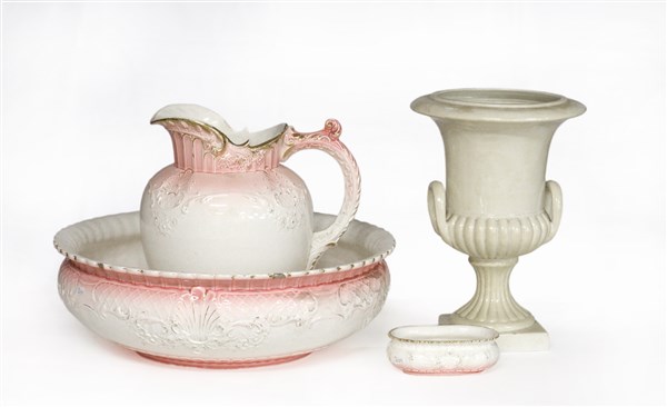 Manifatture diverse, lotto composto da una brocca cn catino e portasapone ed un