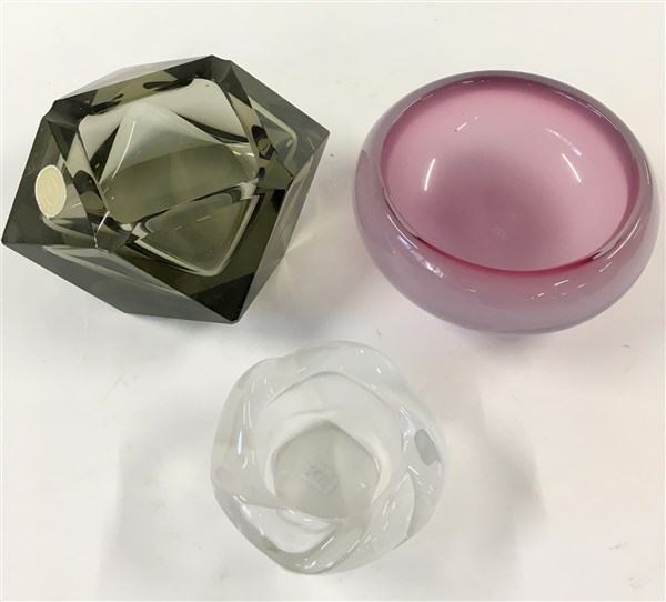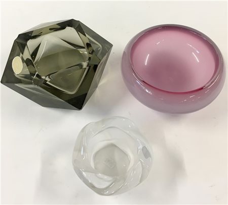 Manifatture diverse. Lotto composto da tre posacenere diversi in vetro e crista