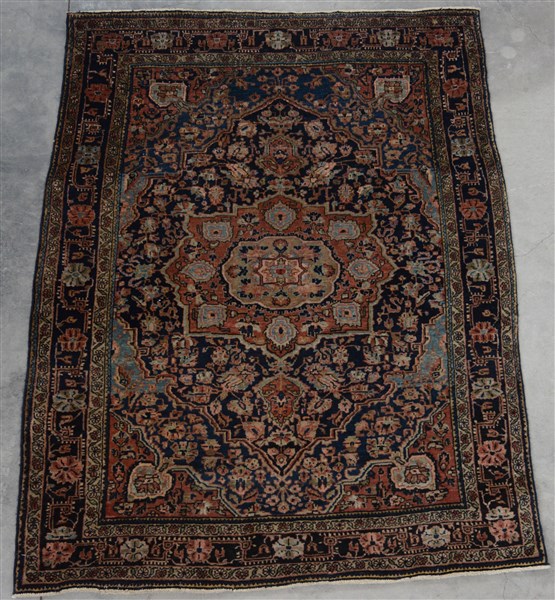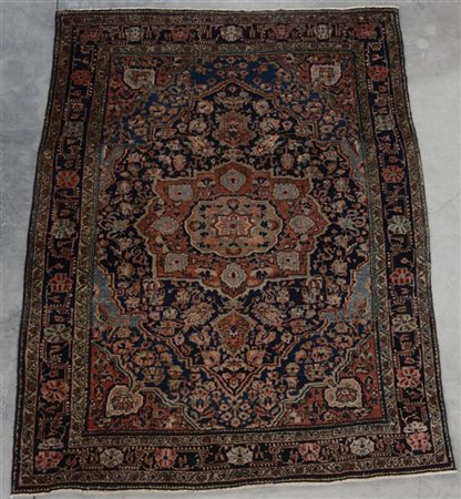 Tappeto Sarouk, Persia, inizio secolo XXI. Decoro con medagliolo su fondo blu n