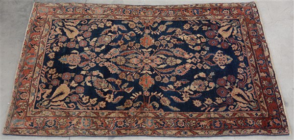 Tappeto Sarouk, Persia, inizio secolo XX. Decoro floreale su fondo blu notte. (