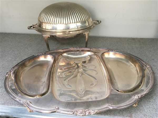 Lotto composto da uno scaldavivande ed un vassoio per arrosti in Old Sheffield