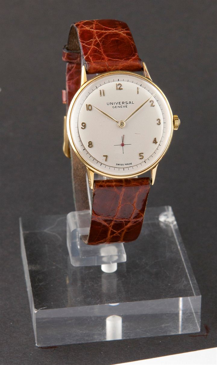 UNIVERSAL GENEVE Solo tempo, anni '60 Diam 33 Cassa monoblocco in oro giallo;...