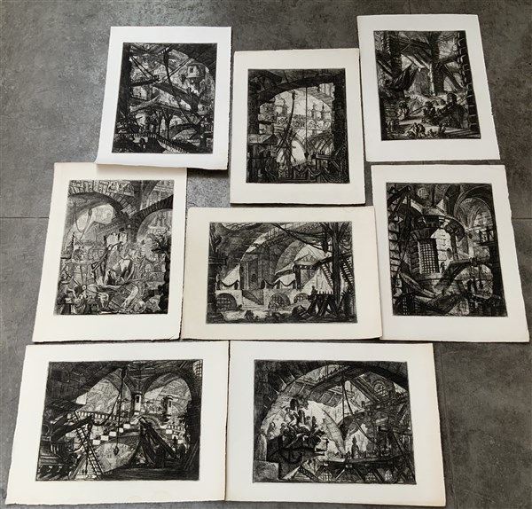 Giovanni Battista Piranesi, gruppo di otto incisioni della serie "Carceri", tir