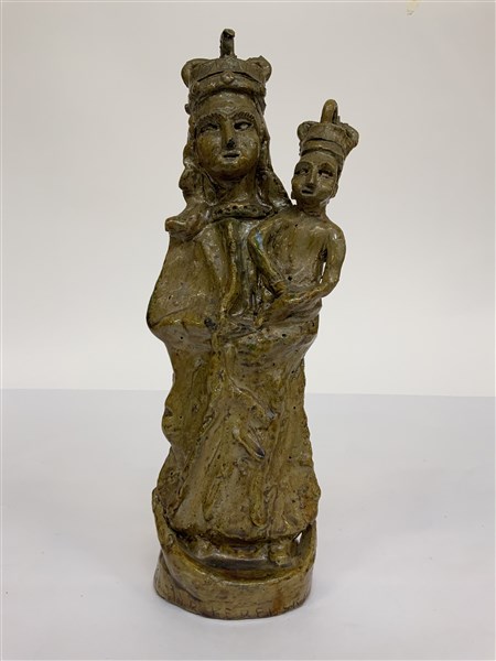 Firma indecifrata, "Madonna con bambino", scultura in terracotta smaltata, firmata e datata 1978 alla base (h cm 31) (difetti e restauri)