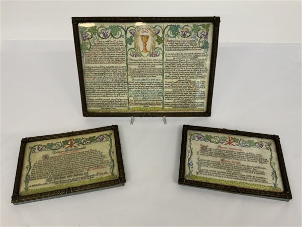 Gruppo di tre cartaglorie con cornici in metallo argentato (difetti)