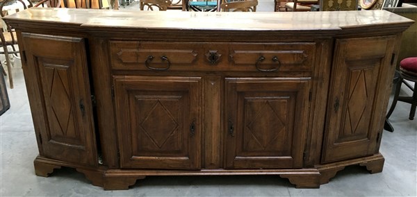 Credenza in legno a quattro ante ed un cassetto sottopiano (cm 230x102x57) (difetti e restauri)