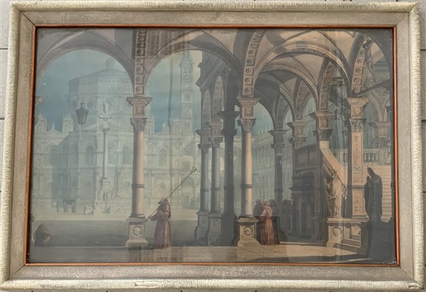 Ignoto del XIX Secolo "L'ora del vespro" tecnica mista (cm 63x100) In cornice