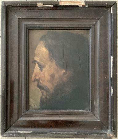 "Profilo maschile" olio tavola (cm 27x21) Firmato in basso a sinistra. In cornice