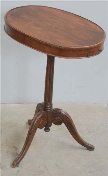 Tavolino d'appoggio tripode con gamba scanalata e tre piedi a sagoma (cm 49x69x36) (difetti)