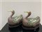 Coppia di scatole in porcellana a forma di papera, base in legno