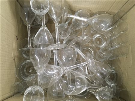 Lotto di numerosi calici diversi in vetro e cristallo (difetti)